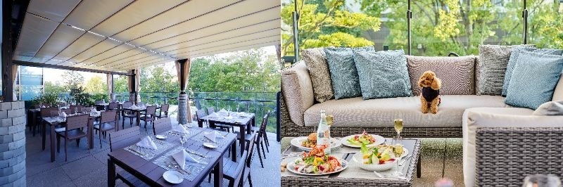 ペット同伴可のテラス席は四季折々の自然あふれる緑地を眺めながら、優雅な時間をお楽しみいただけます。ランチからディナーまで終日営業をしており、様々なシーンでご利用いただけます。