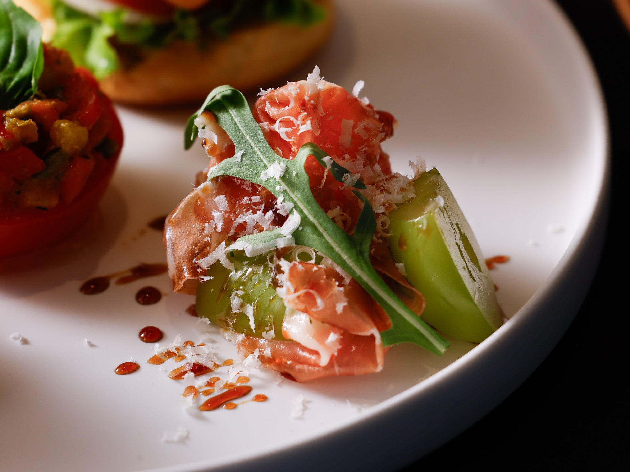 イタリア産の熟成された生ハムと、シャインマスカットの甘さが絶妙に調和する一品です。