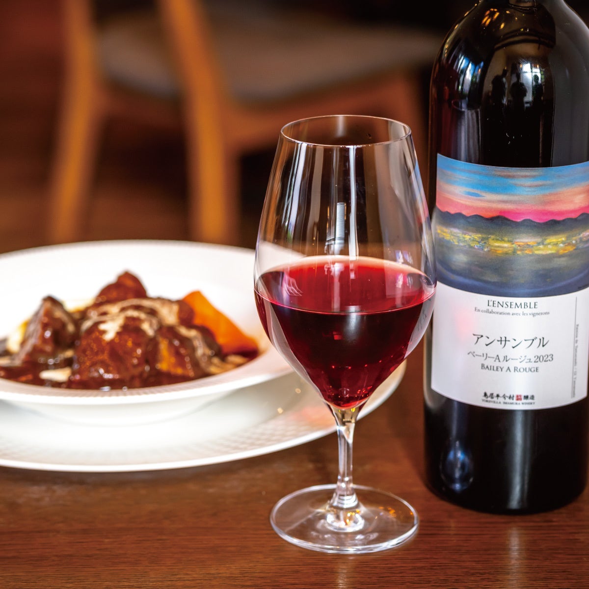 名物・煮込みハンバーグなどと日本産ワインのペアリングをお楽しみください。