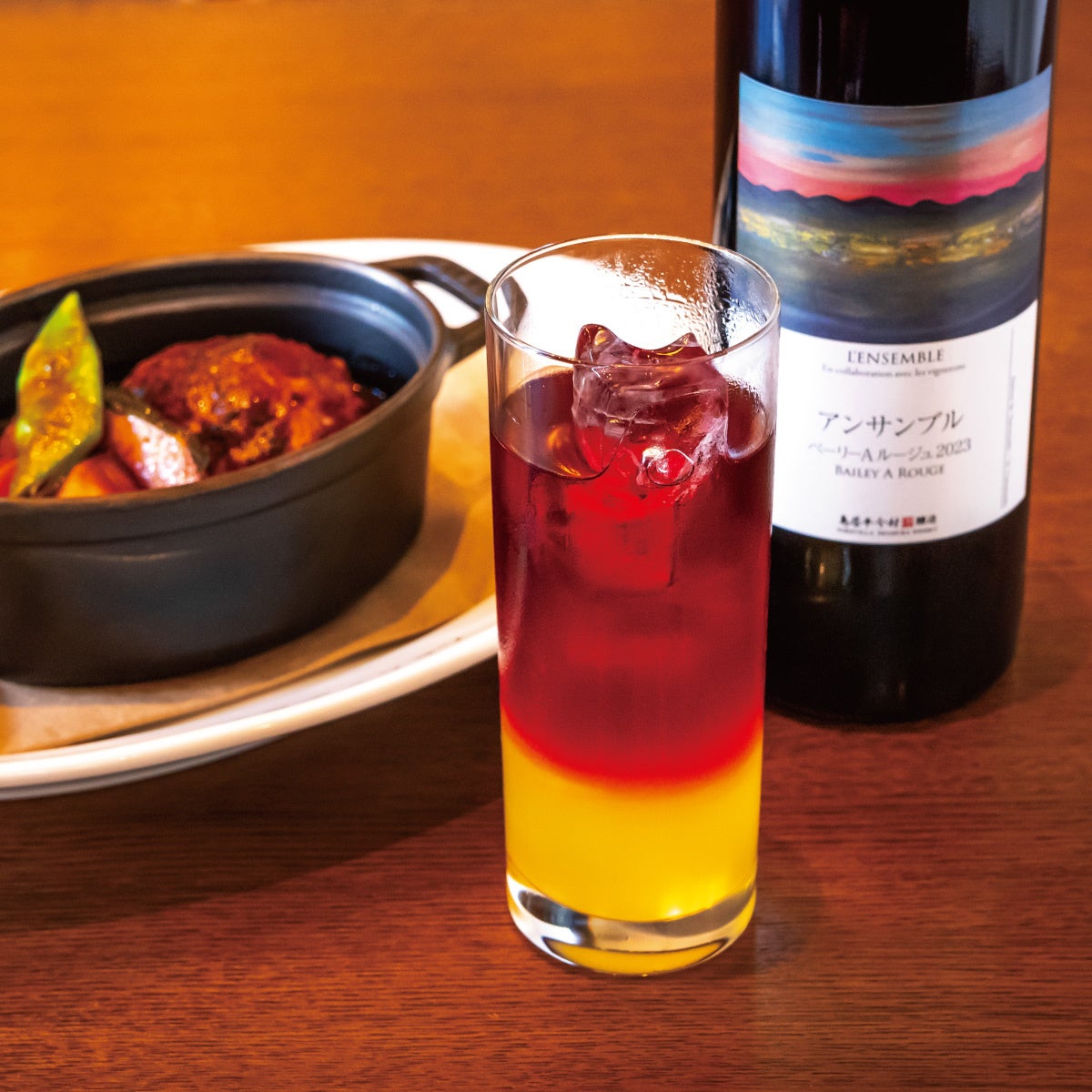 上記の「鳥居平今村 アンサンブル ベリーA ルージュ」に、六甲はちみつを使用した当店オリジナルのレモネードを合わせたカクテル。