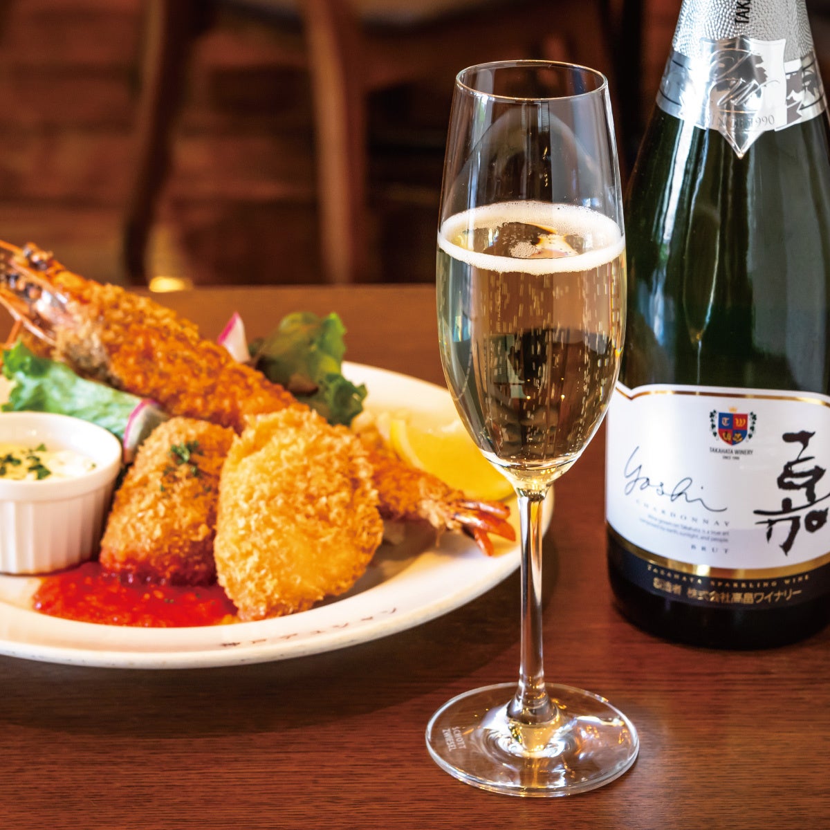 神戸デュシャンでは、3種の魚介の旨味を味わえるミックスフライとのペアをおすすめ。