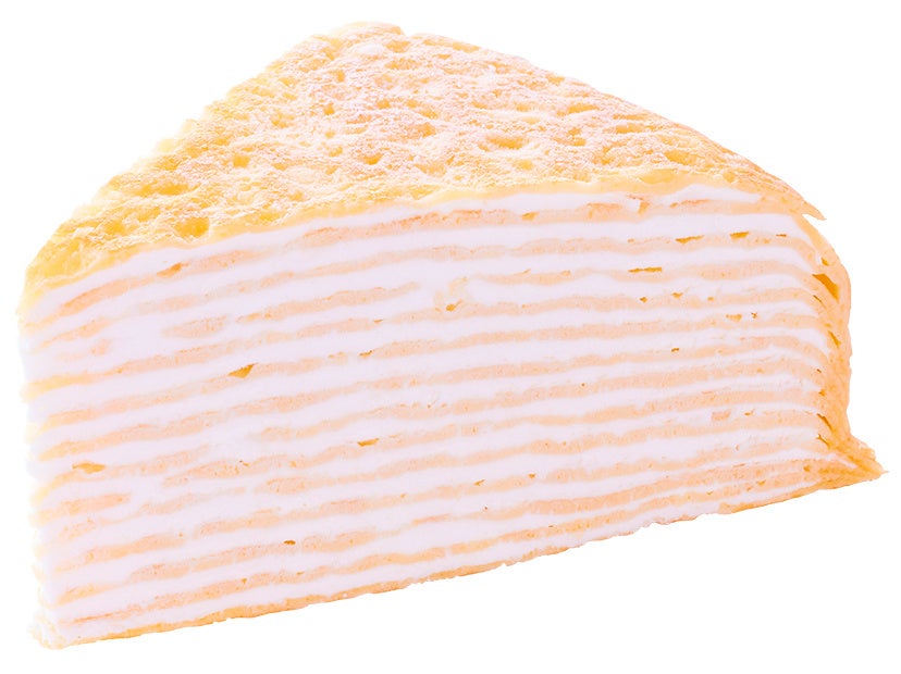 ミルキーミルクレープは、クリームと生地のおいしさ、そして層を重ねることで生まれる食感にこだわりました。なめらかな食感のミルキークリームは、ソフトキャンディのミルキーの、懐かしく優しい甘さを再現しました。香ばしく焼き上げたクレープ生地と合わせ、丁寧に14層に重ねています。ミルキークリームとクレープ生地を一緒に頬張ると、重なる層の舌触りと、次第にクレープ生地がほどけてクリームと合わさるなめらかな食感がお楽しみいただけます。どこか懐かしく、ほっと優しい味わいは、コメダ自慢のコーヒーとも相性抜群です。