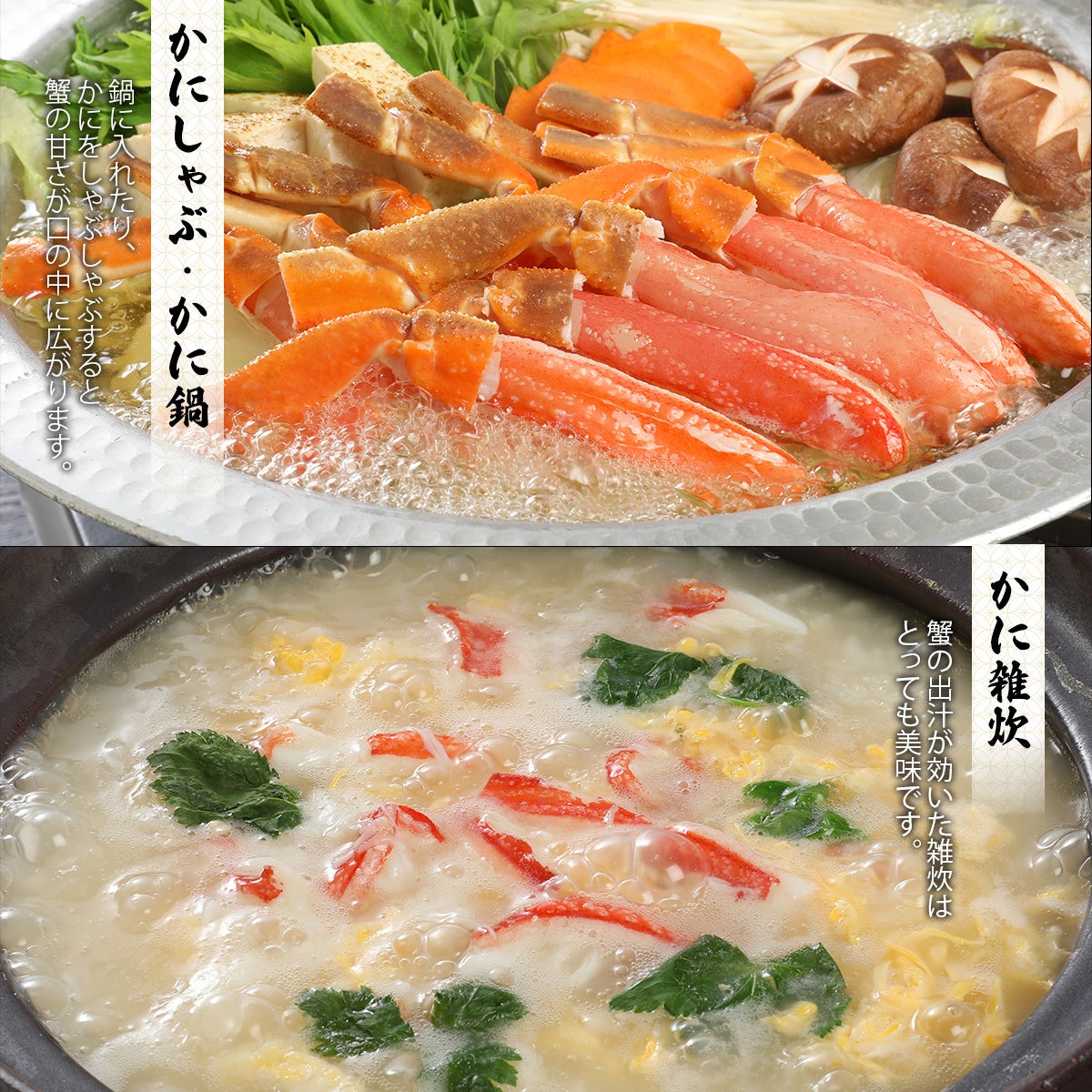 「雪国物語」より、北海道の豊かな漁場から厳選した蟹を2種類ご用意!