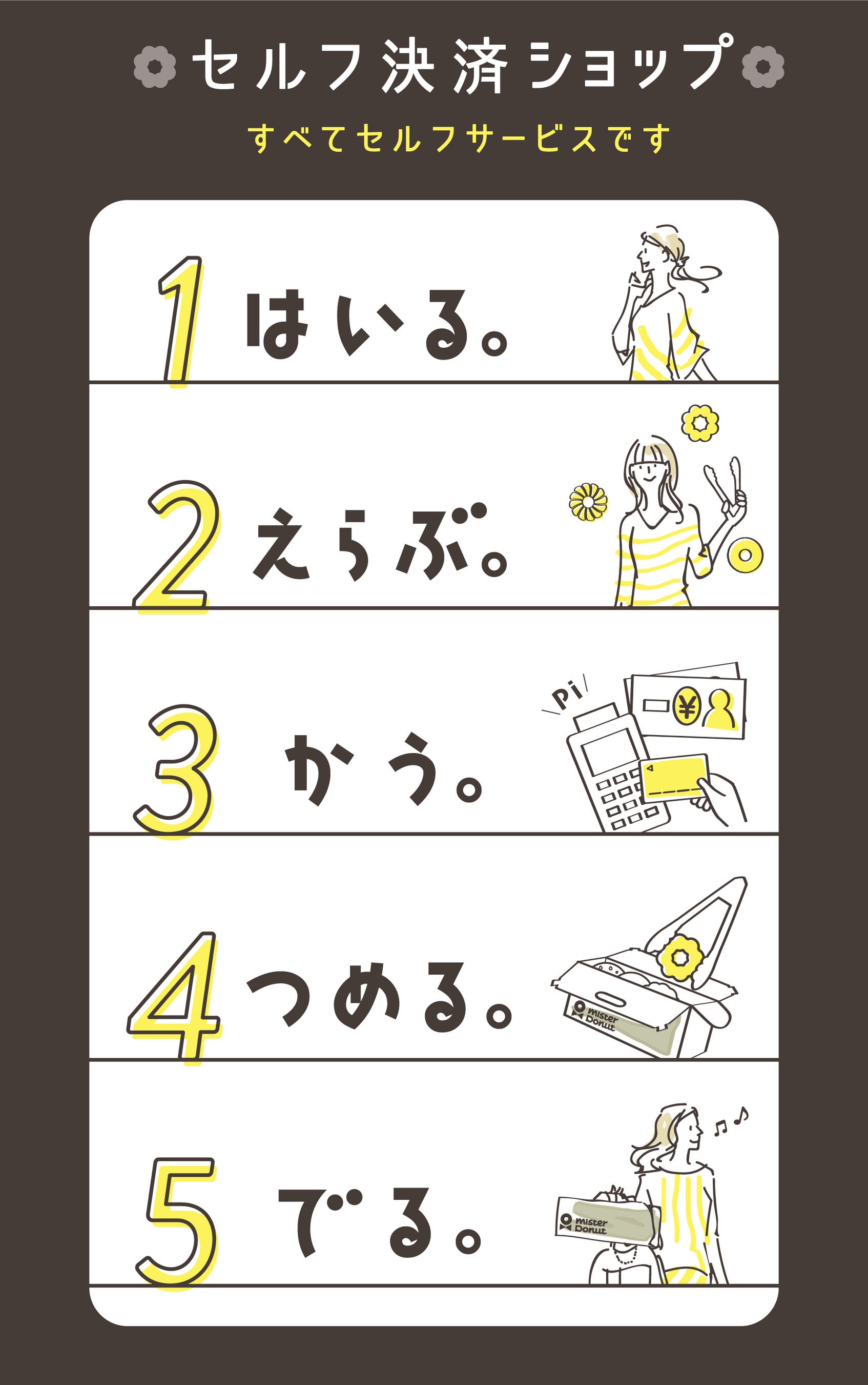 ミスタードーナツでは『いいことあるぞ ミスタードーナツ』をブランドスローガンに、誰もがいつでも「しあわせな時間」を過ごせるお店を目指し、おいしさ、楽しさの提供を追求しています。ドーナツ専門店として商品のおいしさはもちろんのこと、店舗では、利便性、快適さの更なる向上のため、新たな立地条件での出店やミスド ネットオーダーの導入、ミスタードーナツアプリのリニューアルなどを実施してまいりました。