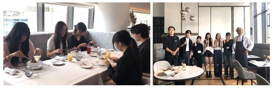 当日は中高校生合わせ5名が参加。事前学習でフィールドワークの実地場所となった北王農林、小笠原農園の野菜を使用し、美味しい食べ方や素材を活かした調理方法を厨房に入り学びました。また、実食の際には熟練のシェフより簡単なレクチャーが行われました。
