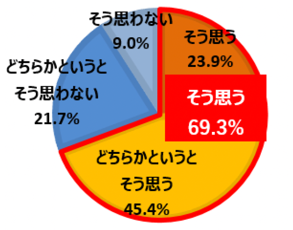 「今後、よりおにぎりを食べたいと思いますか?」という質問では、「そう思う」(「そう思う」23.9%、「どちらかというとそう思う」45.4%の計)が69.3%でした。また、「おにぎり」の「好きな具」について聞いたところ、1位は「鮭」の53.8%で半数を超え、続いて2位「ツナマヨ」45.0%、3位「辛子明太子・焼き明太子」36.7%という結果になりました。
