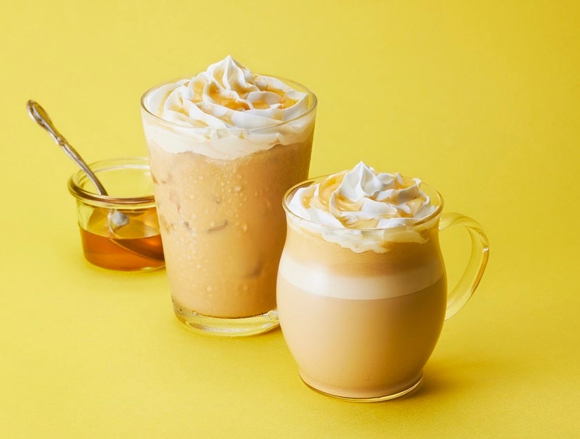 ■同日より、人気の定番商品ハニーミルクラテをデザート感のある味わいにアレンジしたドリンクも登場します。
