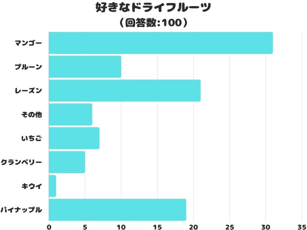 好きなドライフルーツをアンケートにて調査したところ、1位は「マンゴー」でした。