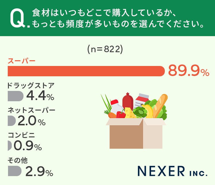 また、普段から食材は「スーパー」で購入している方が9割近くでしたが、一方でネットスーパーで食材を購入している方もいました。