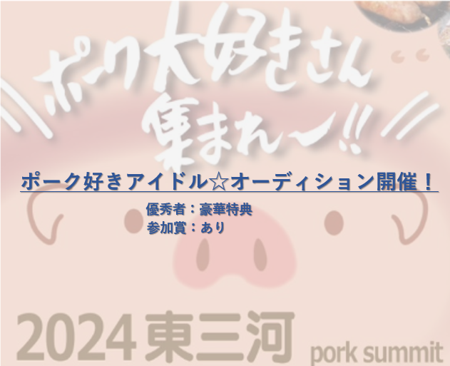 東三河養豚業界で初!6店舗が出店するブランド豚イベントとアイドルオーディションを同時に行います!
