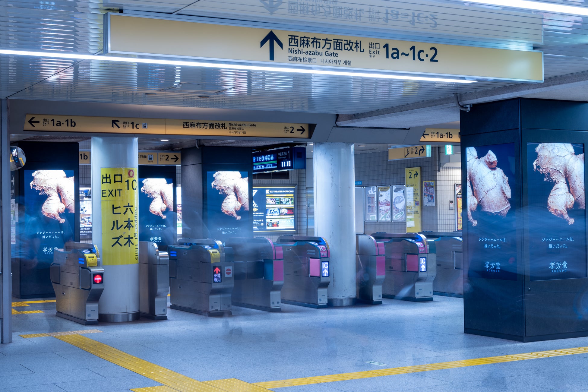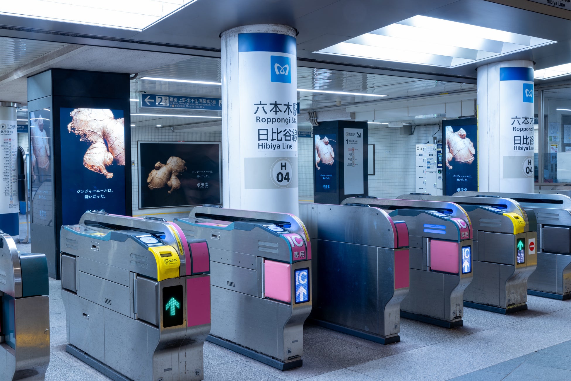 9月23日から29日にかけて、日比谷線六本木駅西麻布改札にて、孝芳堂のブランドの起源を象徴する特別なビジュアルを展開します。この場所は、創業者の城垣誠朗が前職で通勤の際に頻繁に利用していた改札であり、彼がこの先ジンジャーエールと人生を共にするか考え始めた思い出深い場所でもあります。