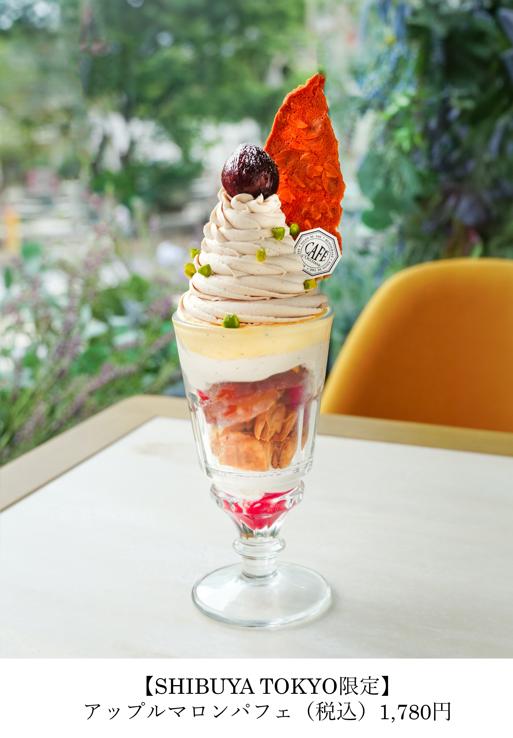 さらに、秋の訪れを感じさせる「りんご」と「栗」を使用した「アップルマロンパフェ」は、甘さを凝縮させた焼きリンゴ・リンゴシャーベット・マロンホイップクリーム・クレームブリュレ・サクサクに焼き上げたパイをあわせたフォトジェニックなパフェ。栗の自然な甘みとりんごの豊かな風味で、心まで満たされる贅沢なひとときをお過ごしください。