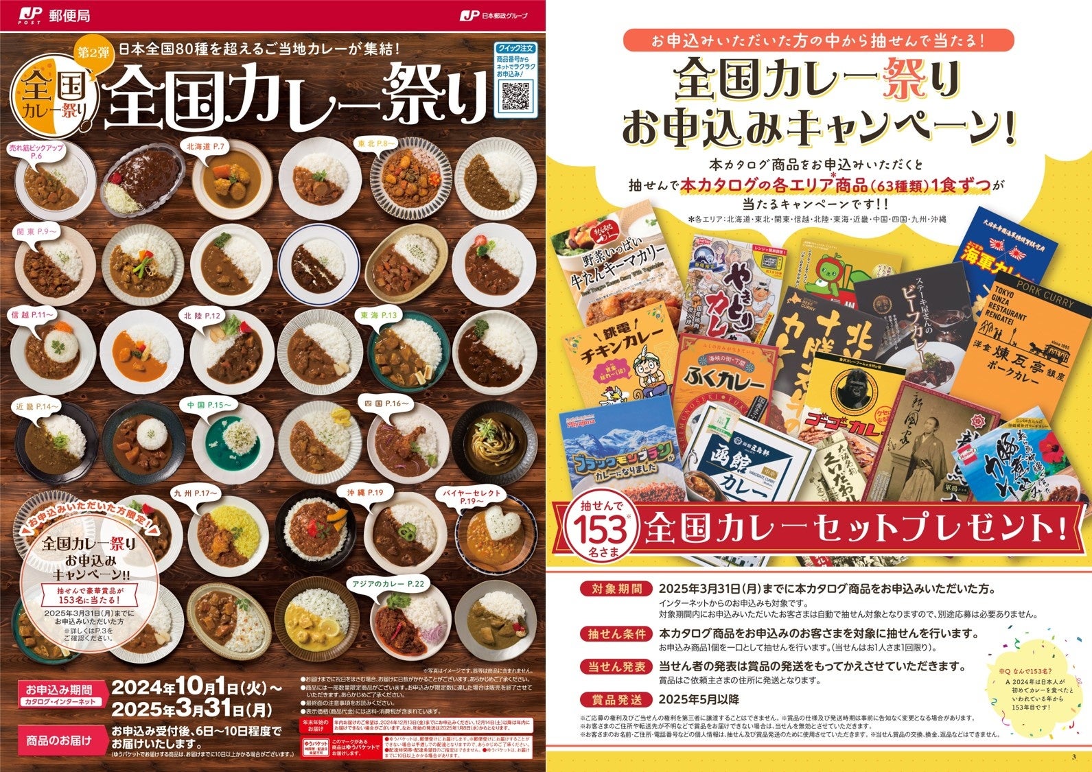 株式会社郵便局物販サービス(東京都江東区、代表取締役社長 荒若 仁)は、「2024年 全国カレー祭り(下期)カタログ」のお申込み受付を2024年10月1日(火)から開始します。