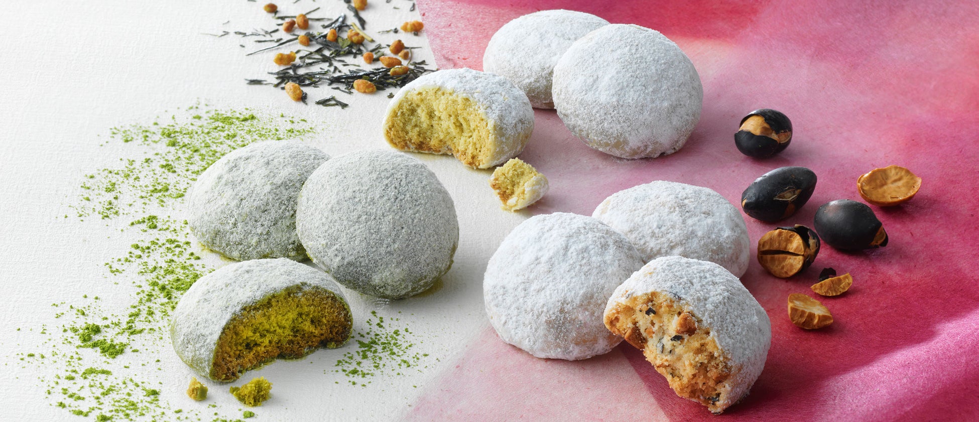 抹茶、玄米茶、黒豆。京都で親しまれてきた味わいを、さくさくほろほろ食感のひと口サイズのクッキーにしました。生地に加えた豆乳クリームバターや米粉、ホワイトチョコレートが、それぞれの素材のおいしさをより引き立たせています。