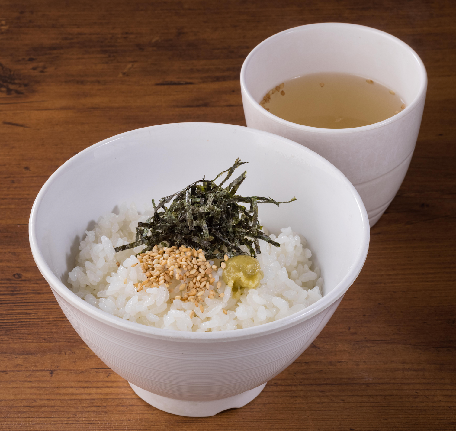 内容:ごはん(小盛)/牛ダシスープ/わさび/きざみのり