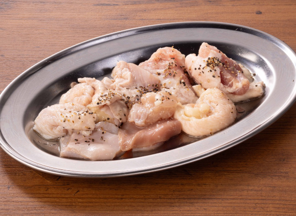 サクッとした食感とジューシーさが際立つ豚ホルモンを、さっぱりとした塩ダレで仕上げました。豚ホルモンは、タン、ガツ、大腸の3種をミックスし、焼き上げることで脂が滲み出し、口の中で塩ダレと一体に。噛むたびに旨みが広がり、さっぱりとしながらも濃厚な味わいを楽しめます。