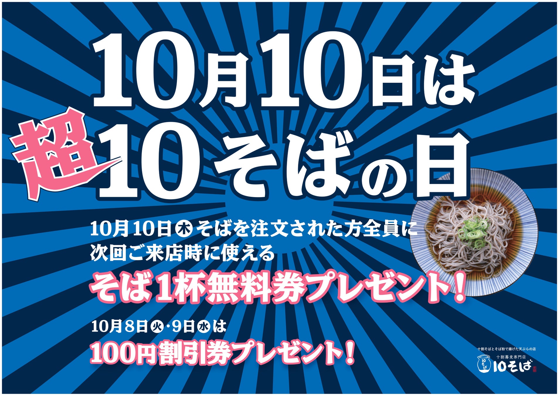 ~10月10日は「超10そばの日」!無料券もプレゼント~