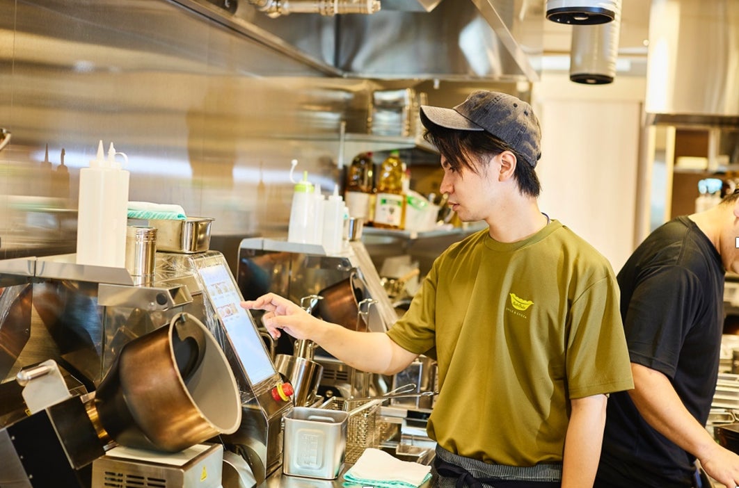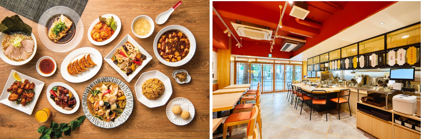 今回「I-Robo2」が初導入された新モデル店舗である鷺沼駅前通り店は、日常使いの街中華はそのまま、時代にあったスタイルへ、生まれ変わっています。大衆中華としてガッツリ飯を楽しみにこられるお客様だけでなく、さまざまなシーンで利用できる場所として、職場仲間や家族、友人との楽しい時間をサポートし、皆様に笑顔をお届けする場所、ユーモア溢れるデザイン、明るい雰囲気の中で、美味しい餃子とともに心温まるひとときを過ごせる心地よい時間の提供を目指すこの店舗で、「I-Robo2」はオペレーションの最適化・美味しいメニューご提供のお手伝いをしています。