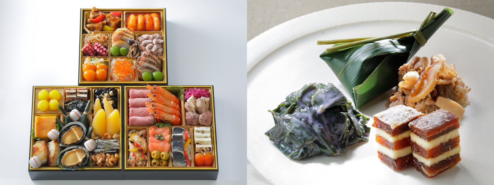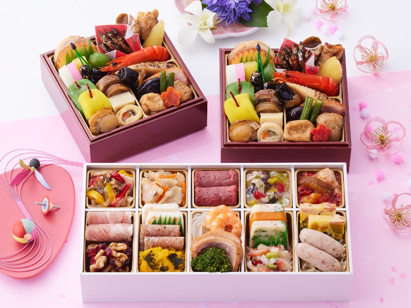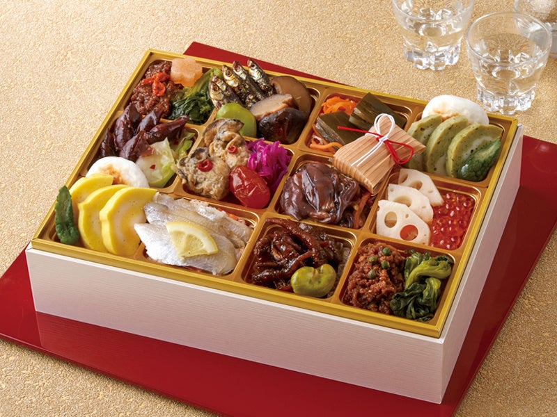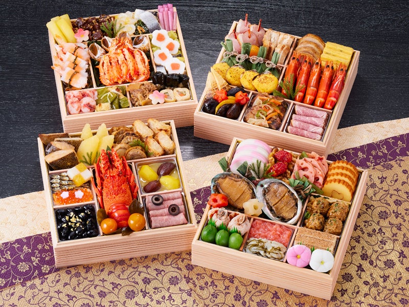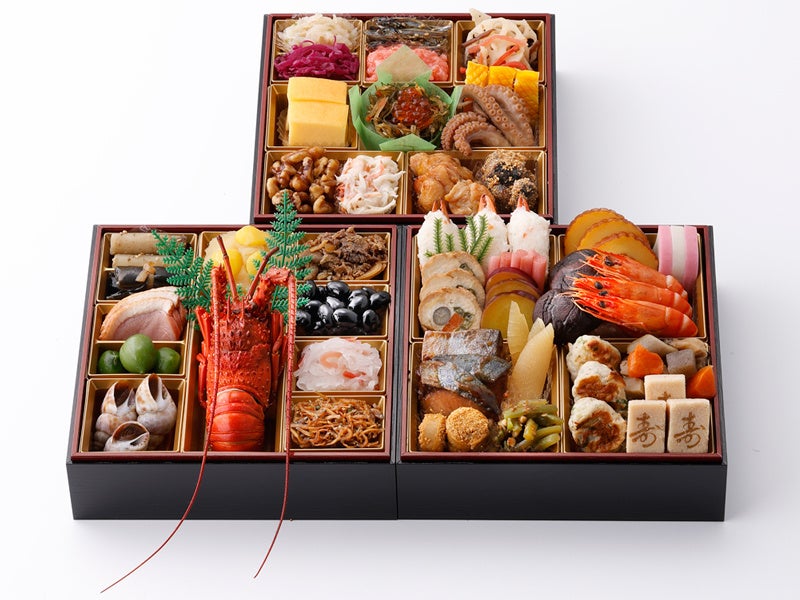【内容】和の重のホタルイカ沖漬や白花豆、洋の重のローストビーフやロブスター、中華の重の黒糖で仕上げたローストポークやあわび煮など、「ホテルニューオータニ」王道のおせちをご堪能ください。