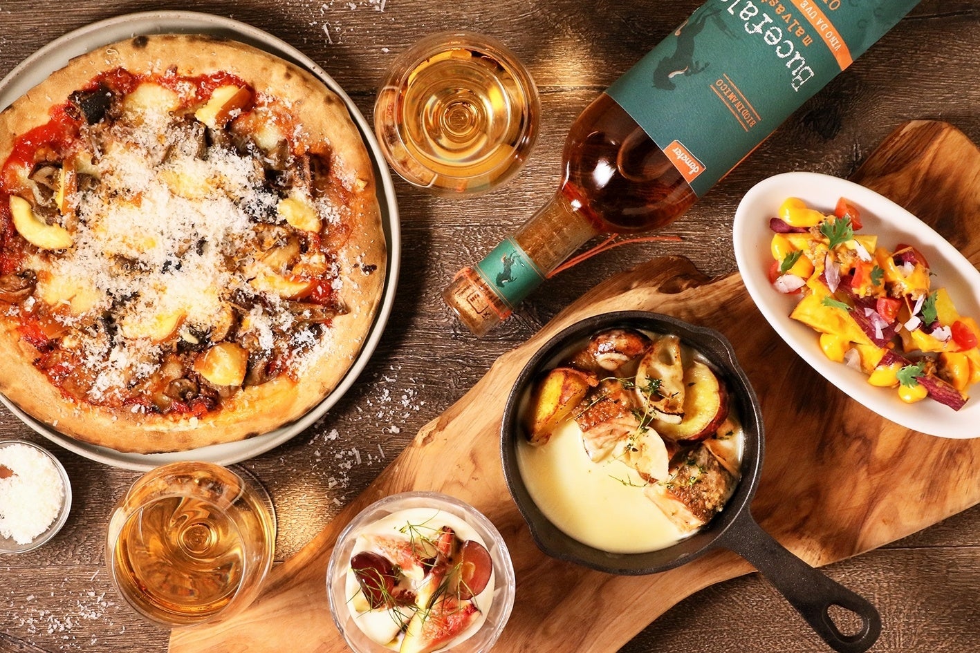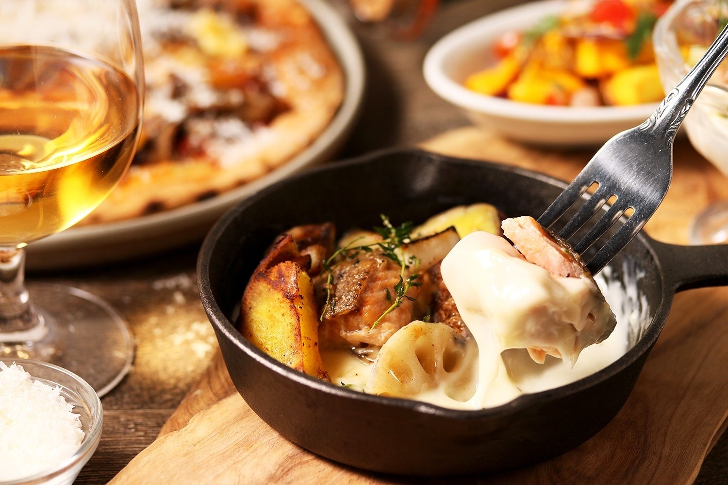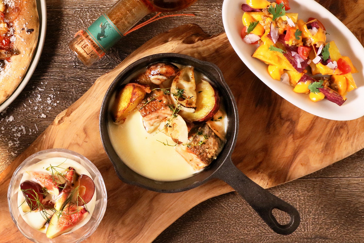 実りの食材やチーズをふんだんに使用したメニューが、前菜からピザまで勢揃い。