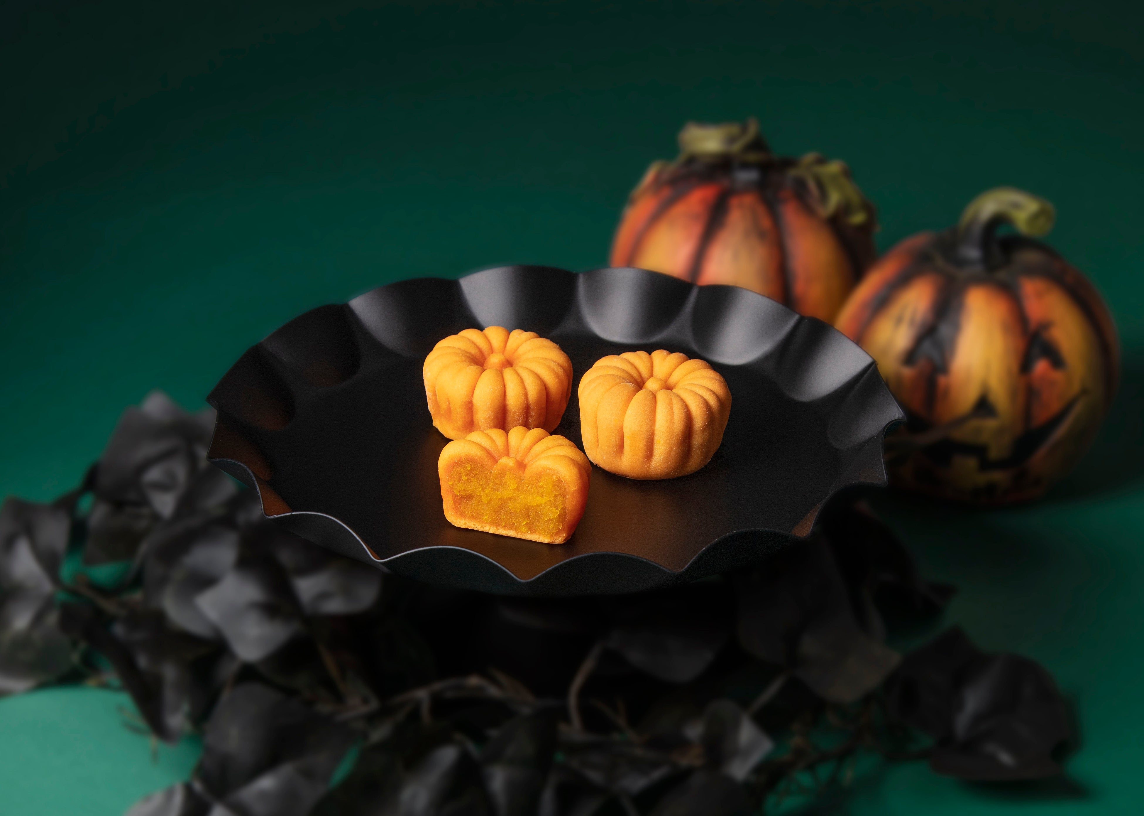 かぼちゃとさつま芋をあわせた餡をかぼちゃの形に包み込みました。