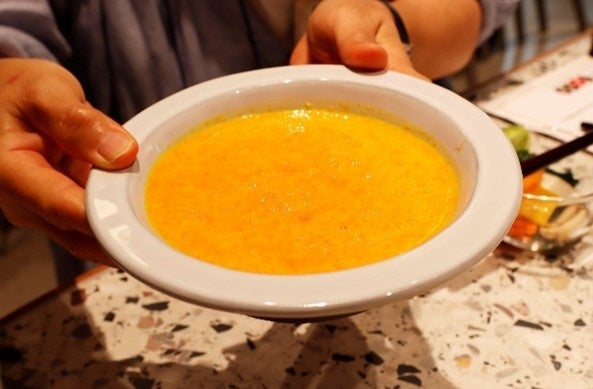 「かぼちゃのポタージュを作る時、綺麗な黄色いポタージュに仕上がるために皮を除いて調理することがあります。勿体無いから皮を極力薄く取り除く、ということも食材を極力無駄にしないように心がけるサステナブルな考え方。しかし、果肉以上にβカロテンが多く含まれている皮を厚めにむいて、厚くとった皮の方でももう1品作っちゃおう!というのが今回大切にしたい考え方です。」と西岡さんがご自身の考えを話すと、参加者の方々は納得の様子で、熱心にメモをとる姿も見受けられました。