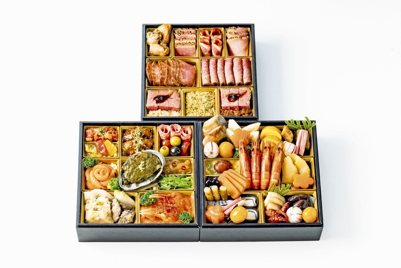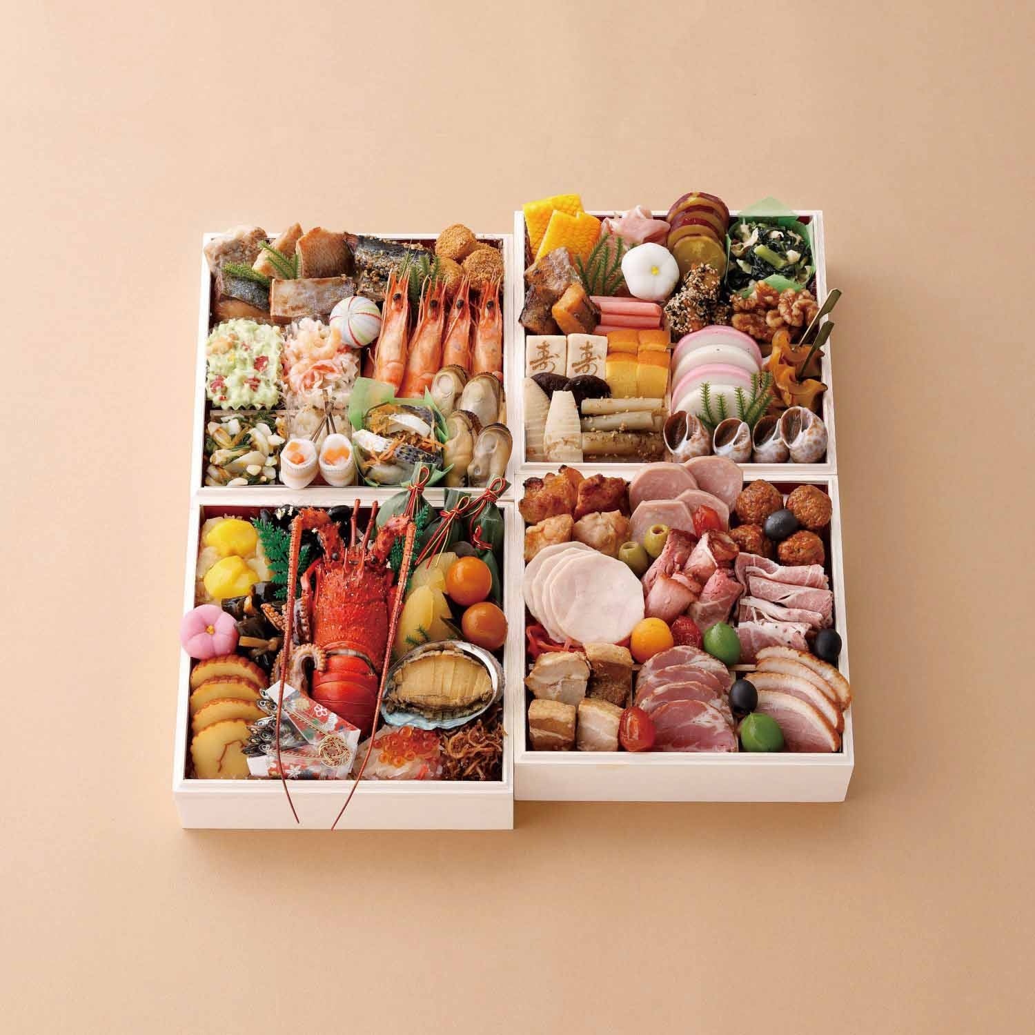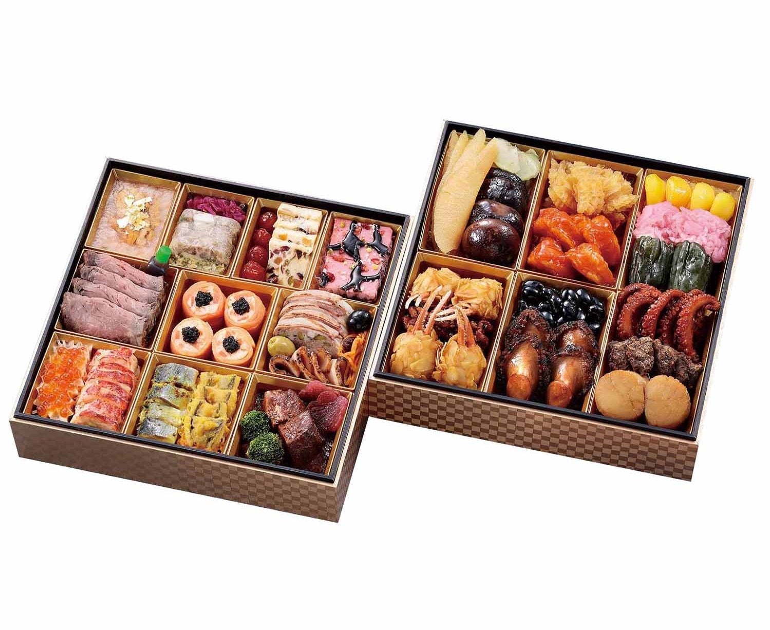 「料亭・名店のおせち」、一段まるごと「肉料理」や「蟹料理」を詰め込んだ「美味づくしおせち」