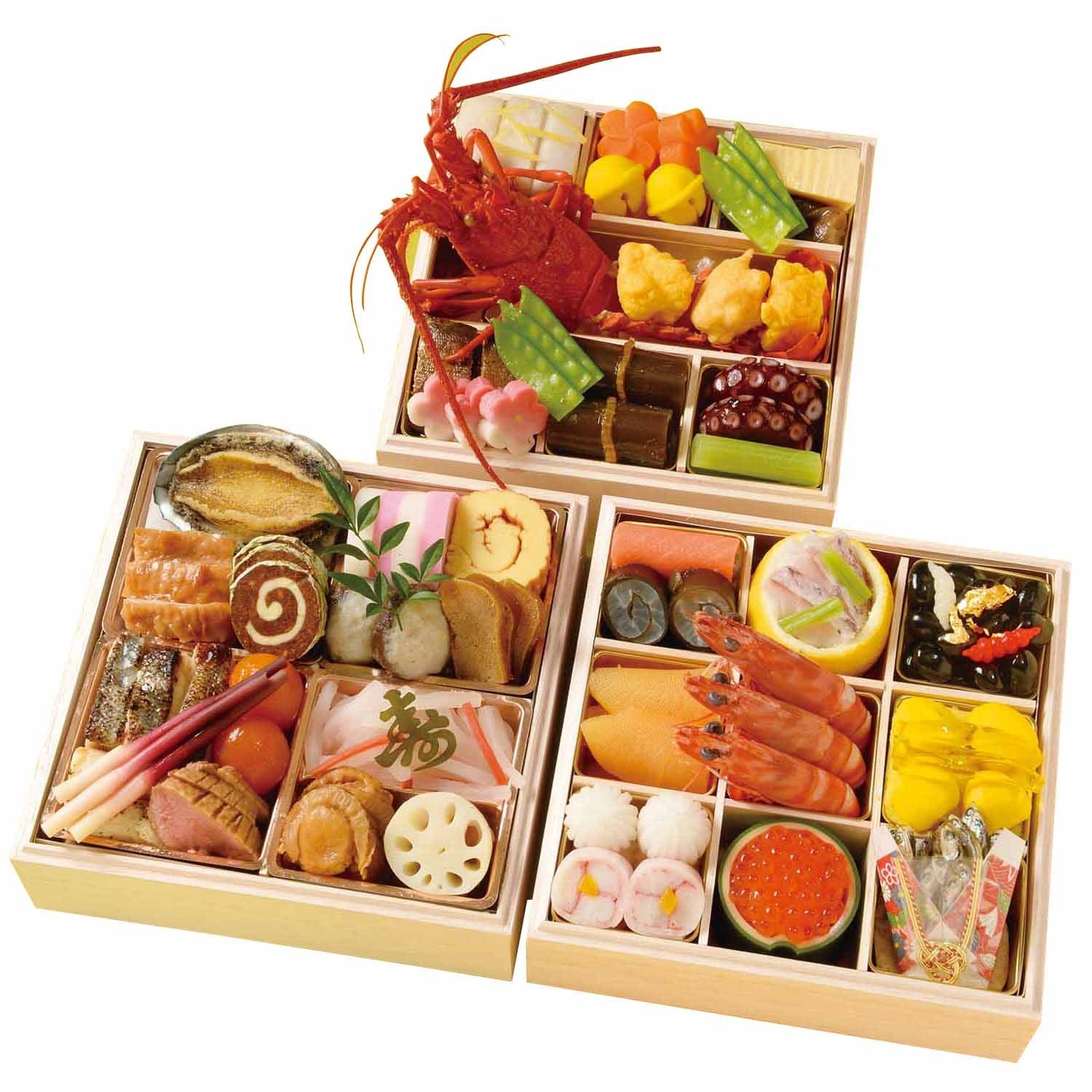 ました。和洋中の味が楽しめる豪華で彩り豊かな三段重です。