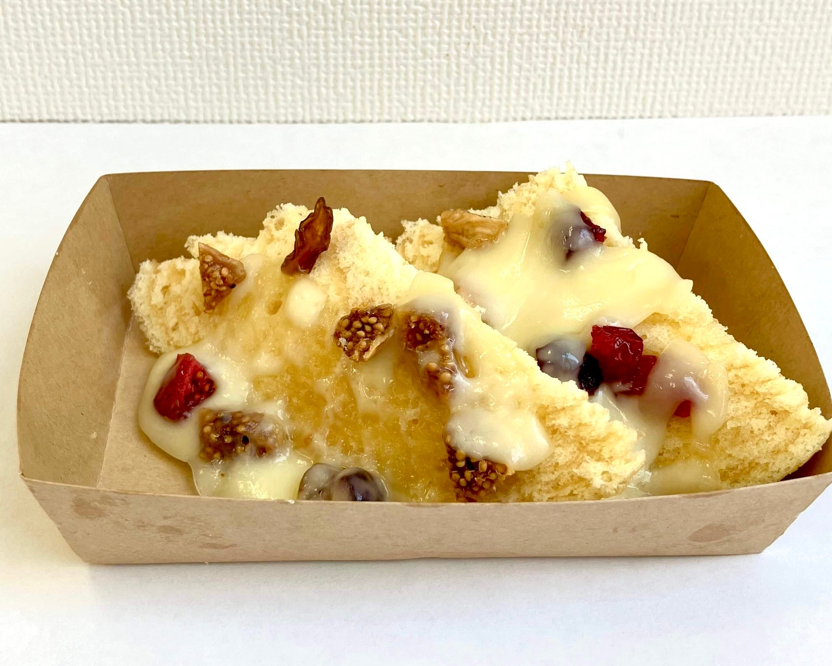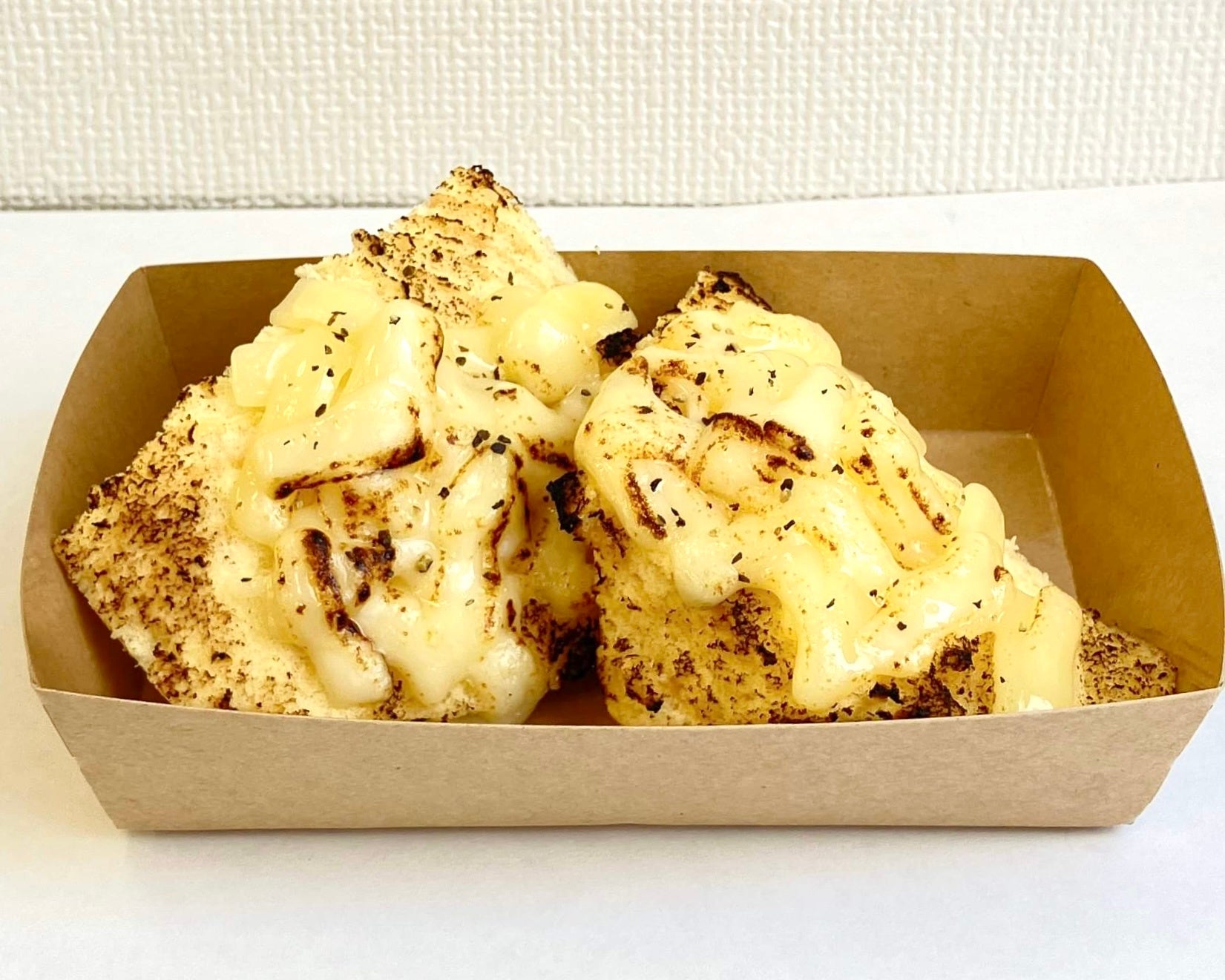 食感をなめらかにするためあえて削ぎ切りにしたバウムクーヘンに3種のトッピングをご用意しています。シンプルさ重視の人にはシュガーバターがおすすめ。バウムクーヘンにはバターをたっぷりと使用していますが、さらにシュガーバターをかけて炙ることで、しっとりかつ濃厚なバウムクーヘンに仕上げています。甘いのは少し苦手という人には黒コショウチーズがおすすめ。炙ってとろけるチーズに黒コショウがアクセントとなり、まるでおつまみのようにバウムクーヘンを楽しめます。食感を楽しみたい人にはフルーツピザがおすすめ。ドライフルーツにはちみつとチーズをそえ、歯ごたえがあり甘じょっぱい、ほかでは食べられないバウムクーヘンになりました。ぜひ3種の食べ比べてみてください!