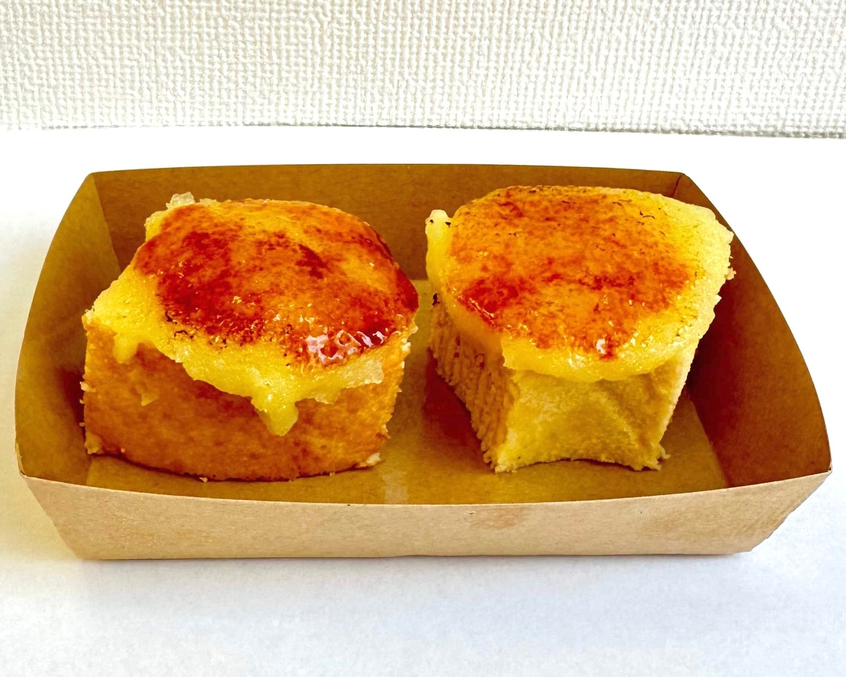 さつまいもペーストをのせ上から炙ることでブリュレ風のバウムクーヘンに仕上げました。秋の味覚さつまいもを使用し、炙ることで香りをたて、甘いバウムクーヘンに仕上げています。ブリュレ風にすることでサクサクとした食感が楽しめます。2個入りと5個入りをご用意していますので、カップルやご家族でシェアしてお楽しみください。