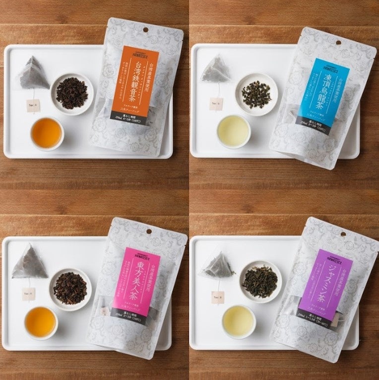 また、これらの台湾グルメと合わせてお楽しみいただきたいアイテムが「台湾茶」です。現地では、食事に合わせる飲み物として日常的に親しまれています。茶葉の発酵の度合いが幅広いことから、銘柄によって香りや味わいが異なり、豊富なバリエーションを楽しめることが魅力です。今回のフェアでは、ティーバッグで7銘柄、ペットボトル飲料で2銘柄の台湾茶を合計15品ラインナップ。まろやかな味わいやすっきりとした後味、そして華やかな香りや香ばしい香りなど、お客様のお好みに合わせてお選びいただけます。その日のお客様の気分やシーンに合わせて、王道の「台湾グルメ」と「台湾茶」の組み合わせを自由に選び、お好みに応じてカスタマイズできる台湾の食卓をご提案いたします。ぜひご自宅で手軽に“お茶と楽しむ台湾グルメ”の世界をお楽しみください。