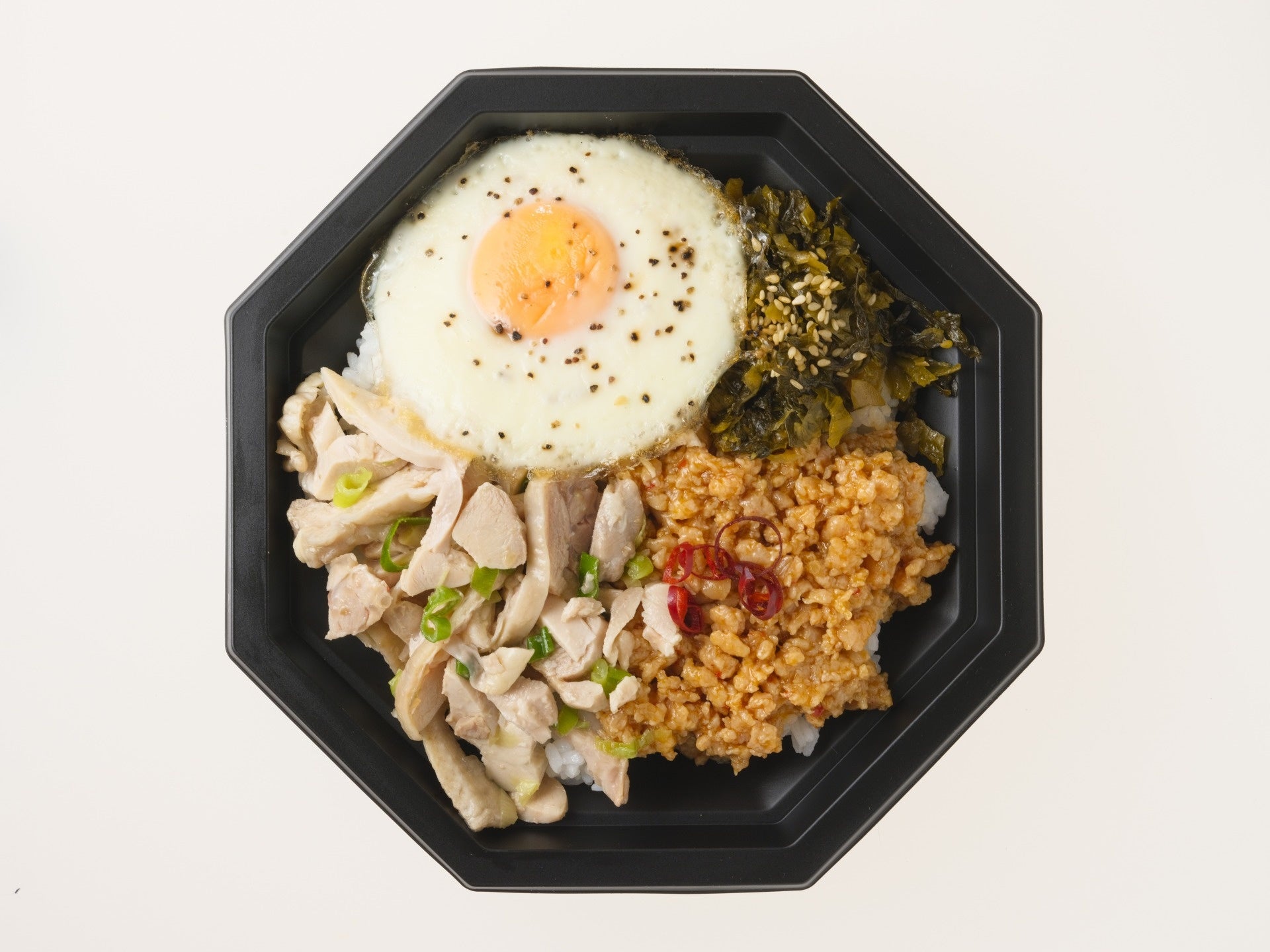鶏肉飯は、白米の上に蒸した鶏肉をほぐしてのせた台湾風のチキンライスのこと。現地では、日常的に親しまれている料理です。塩とねぎ油をベースに、生姜を用いてさっぱりとした味付けに仕上げ、大きめにほぐした鶏肉と、醤油や豆板醤でしっかりと味をつけた鶏そぼろの2種類をそれぞれご飯の上にのせています。高菜と目玉焼きをトッピングし、様々な食感と味わいで、最後まで食べ飽きずにお楽しみいただける一品です。