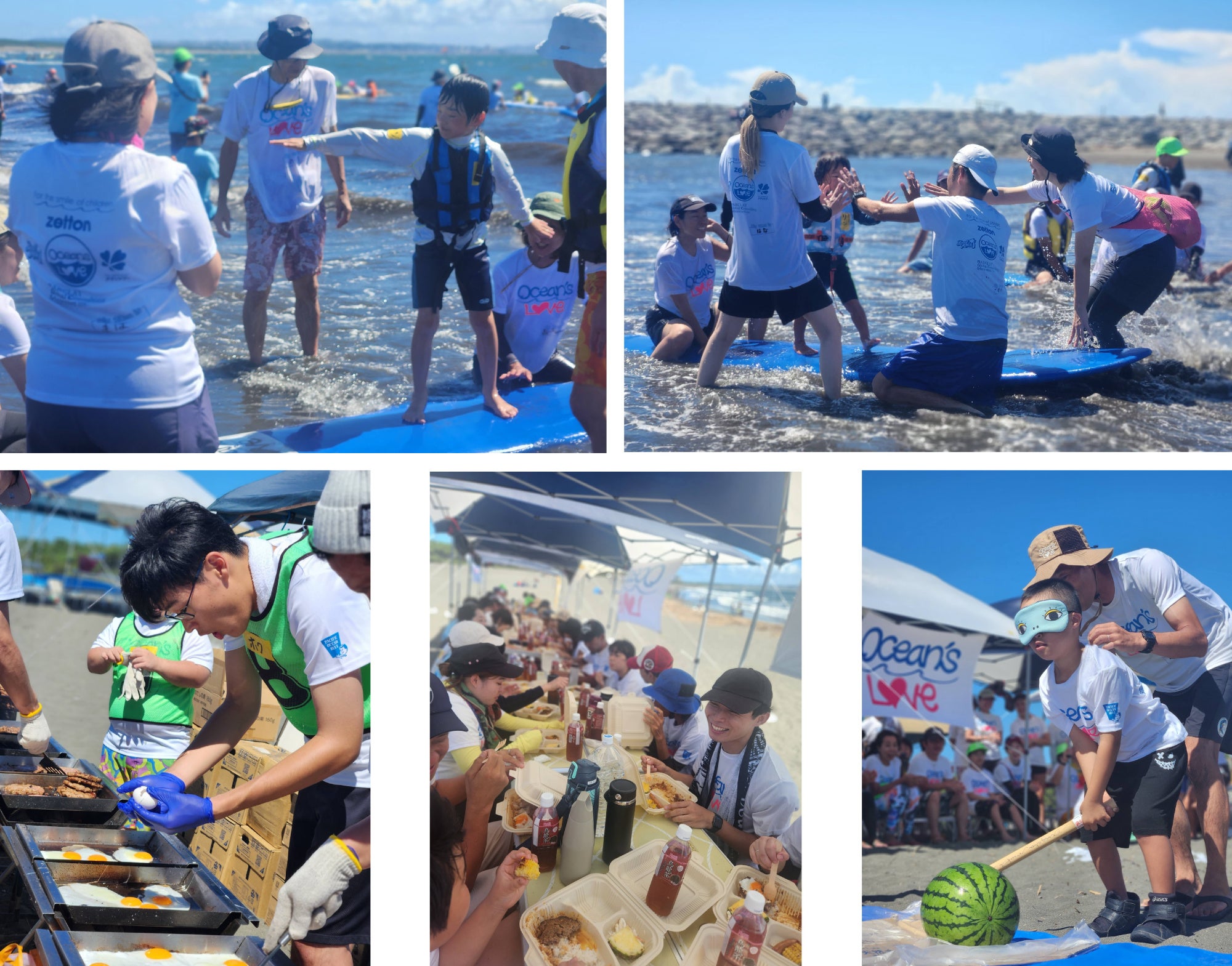 当社は、Ocean’s Loveの取り組みに賛同し、2012年から法人サポーターとして活動を続けています。2013年からは、障がいのある子どもたちが明るい未来へ向けて成長するきっかけ作りを目指し、Ocean’s Loveが主催するサーフィンスクールを支援してきました。今回の活動では、サーフィン体験のサポートに加え、ランチの提供やスイカ割りなどのアクティビティを行い、子どもたちが楽しみながら成長を感じられる一日を過ごせるよう尽力しました。