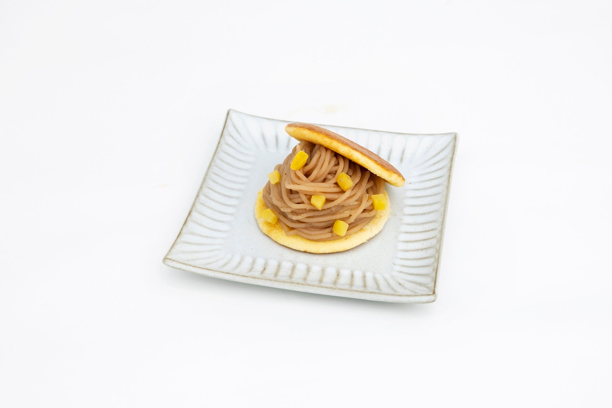 黒蜜を染み込ませたしっとり食感のどら焼きの皮で、自家製の栗あんと山本山のほうじ茶を使用したほうじ茶クリームを挟みました。仕上げに細かく刻んだ栗の甘露煮を加えて食感の違いもお楽しみいただけます。