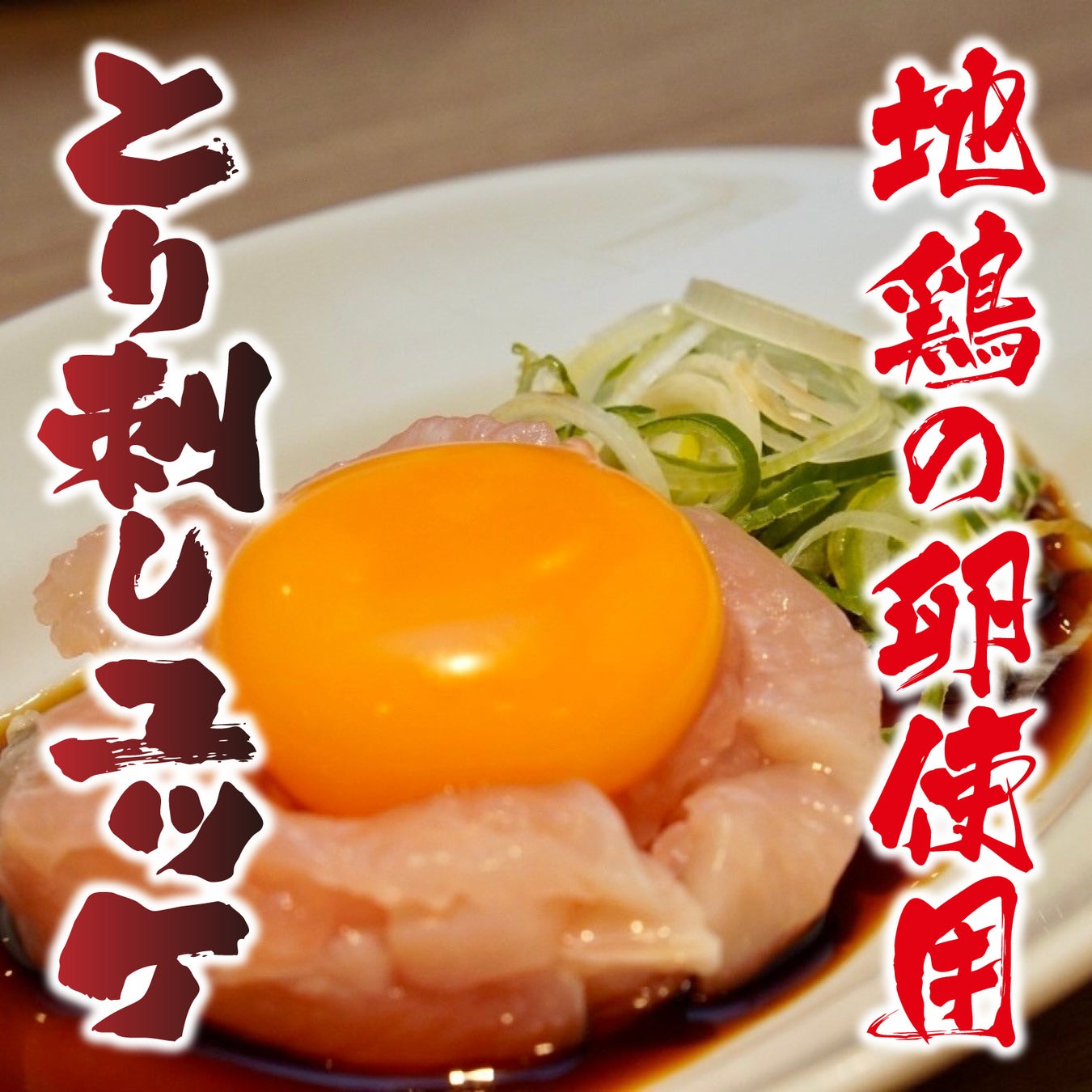 国産無菌鶏と地鶏の濃厚な卵黄とり刺しユッケ(税込638円)ぷりぷりの鶏肉と卵黄のまろやかな風味が絶妙にマッチ。トロトロでのどごし最高!歯がなくても食べられる「飲めるユッケ」です。