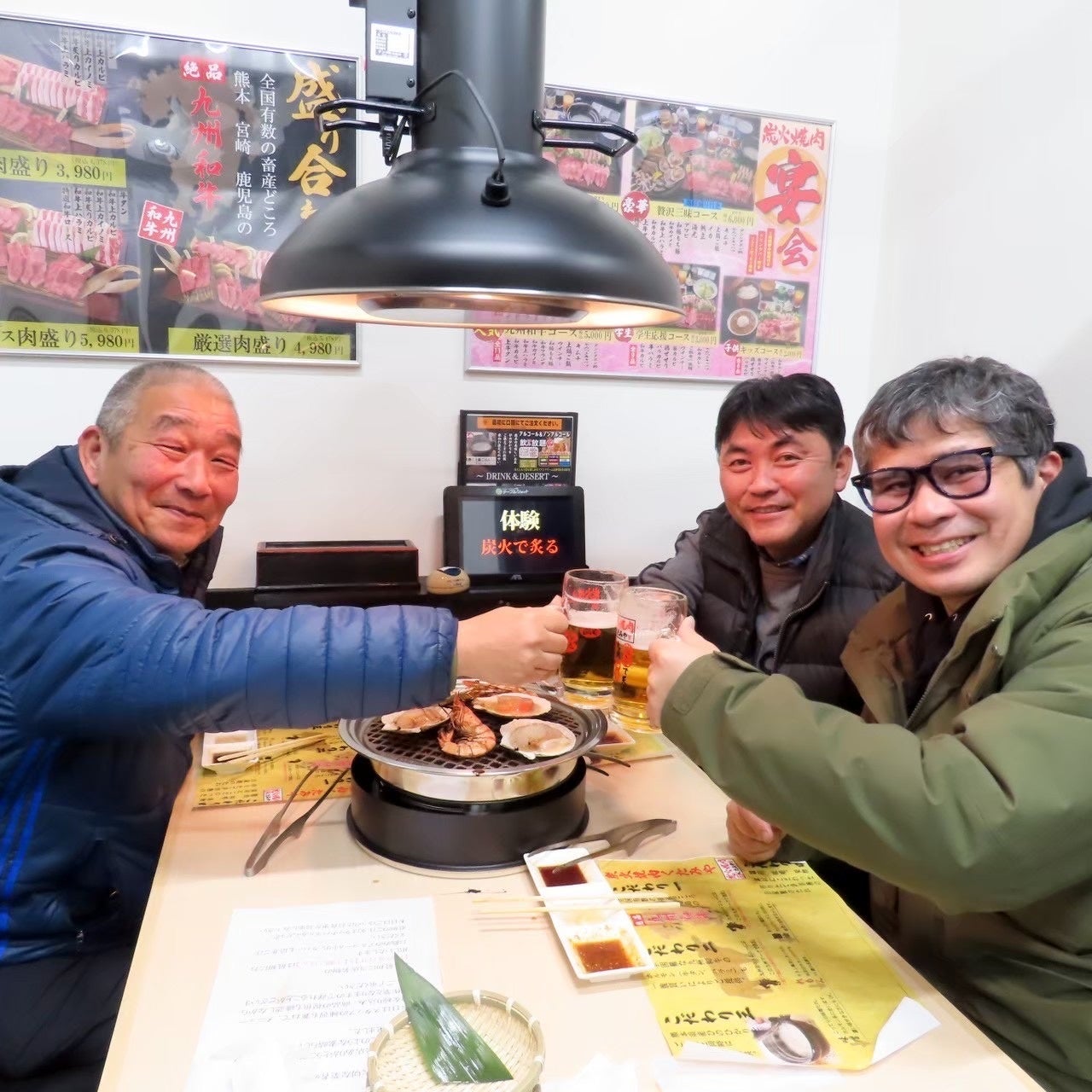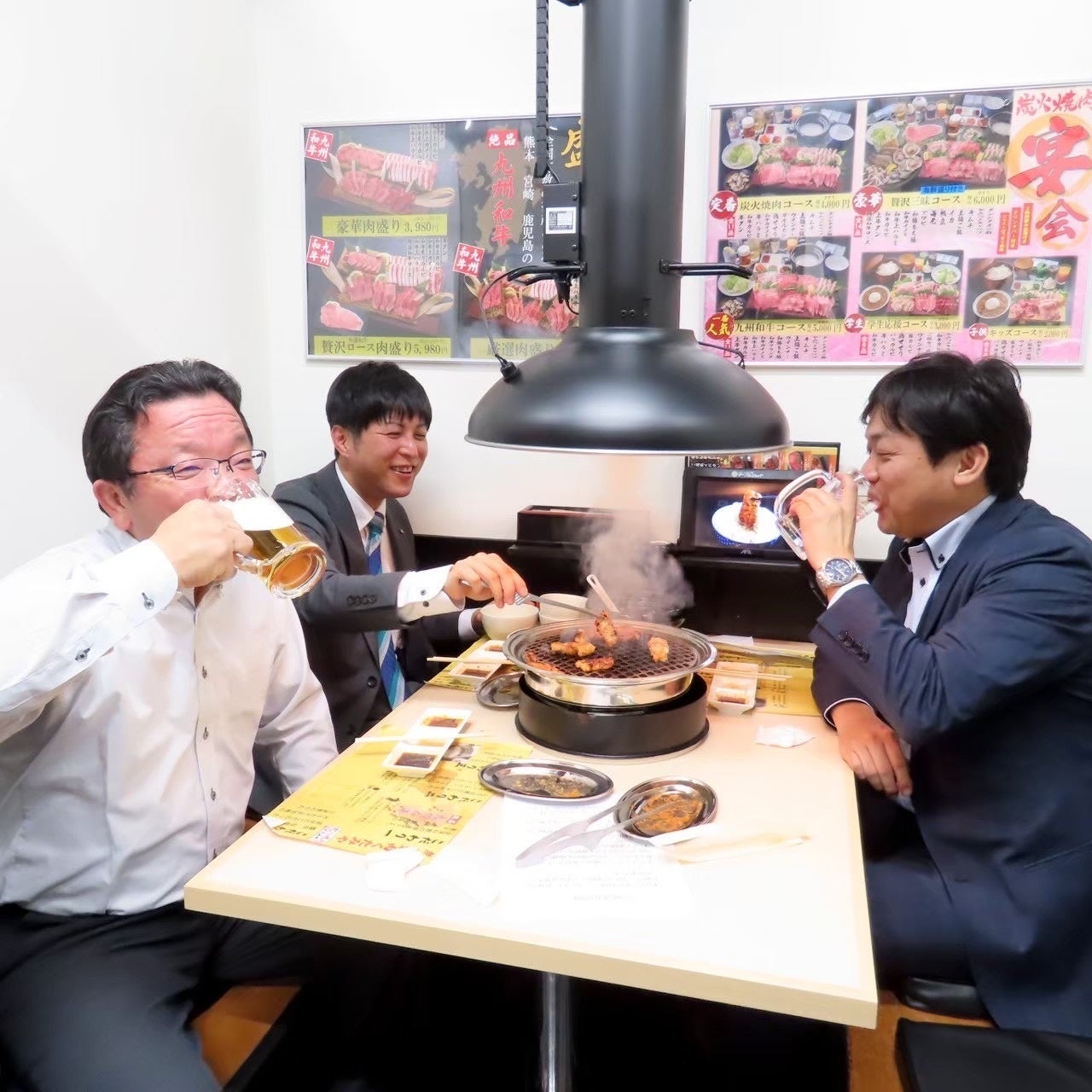 九州和牛本来のうまみを最大限生かすため、全てのテーブルに【炭火コンロ】を設置し炭火で炙る焼肉を体験していただけます。炭はガスなどと違って余分な水分が出ないため、食材が湿っぽくなりません。 良い炭は炎を出さないので表面を焦がさずパリッと焼け、中までふっくらと柔らかく焼き上げます。 また、炭の遠赤外線効果で表面を素早く焼き上げるので、肉を焼いた場合などは、肉のうまみ成分(アミノ酸)のある肉汁をしっかり閉じ込め、うまみを逃しません。
