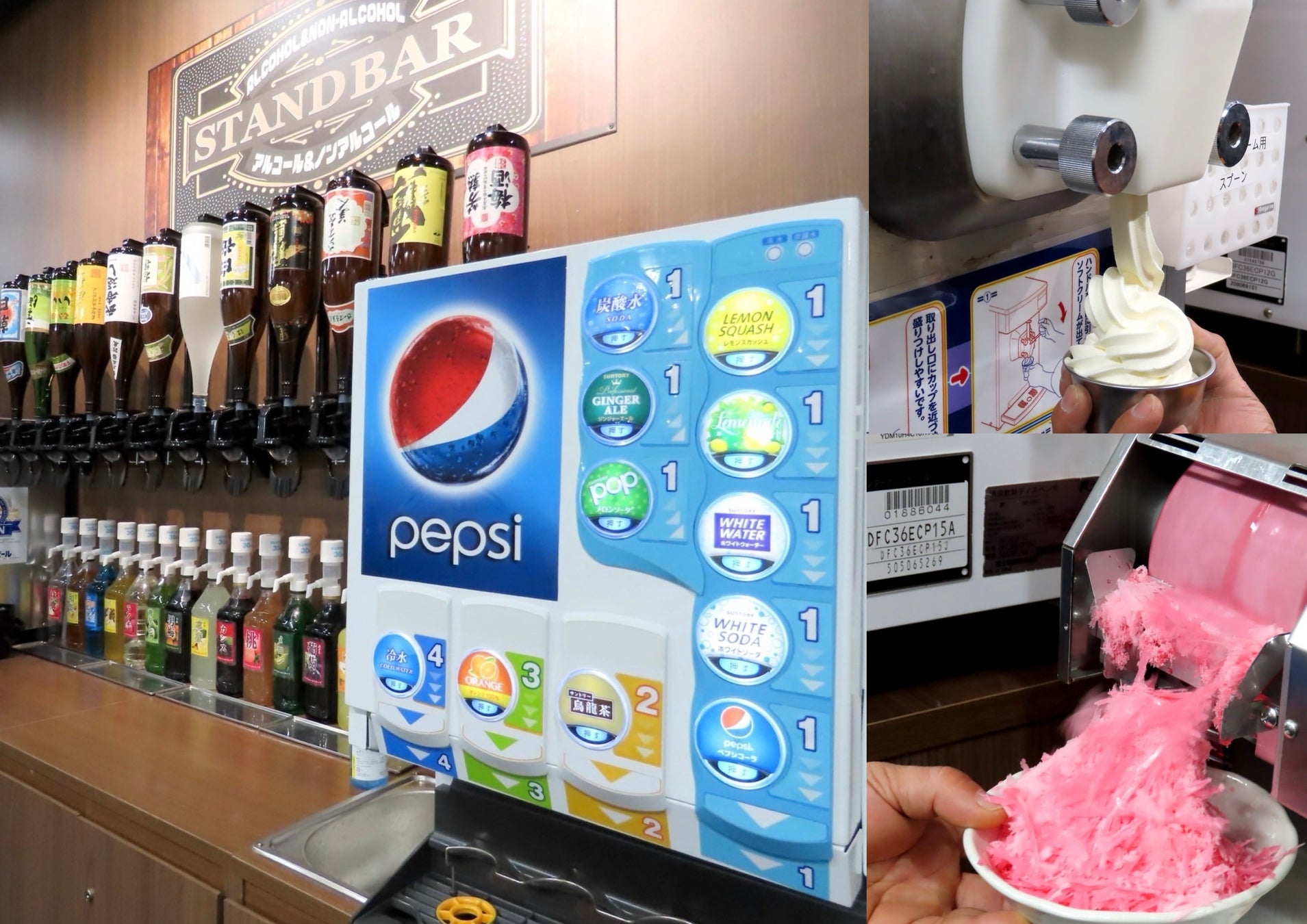 さらに、ソフトクリーム、かき氷の機械もそれぞれ設置。飲み放題をご注文いただくとセットでソフトクリームやふわふわ粉雪かき氷も食べ放題でお楽しみいただけます。お子様はもちろん、大人もお楽しみいただける楽しい体験ができます。