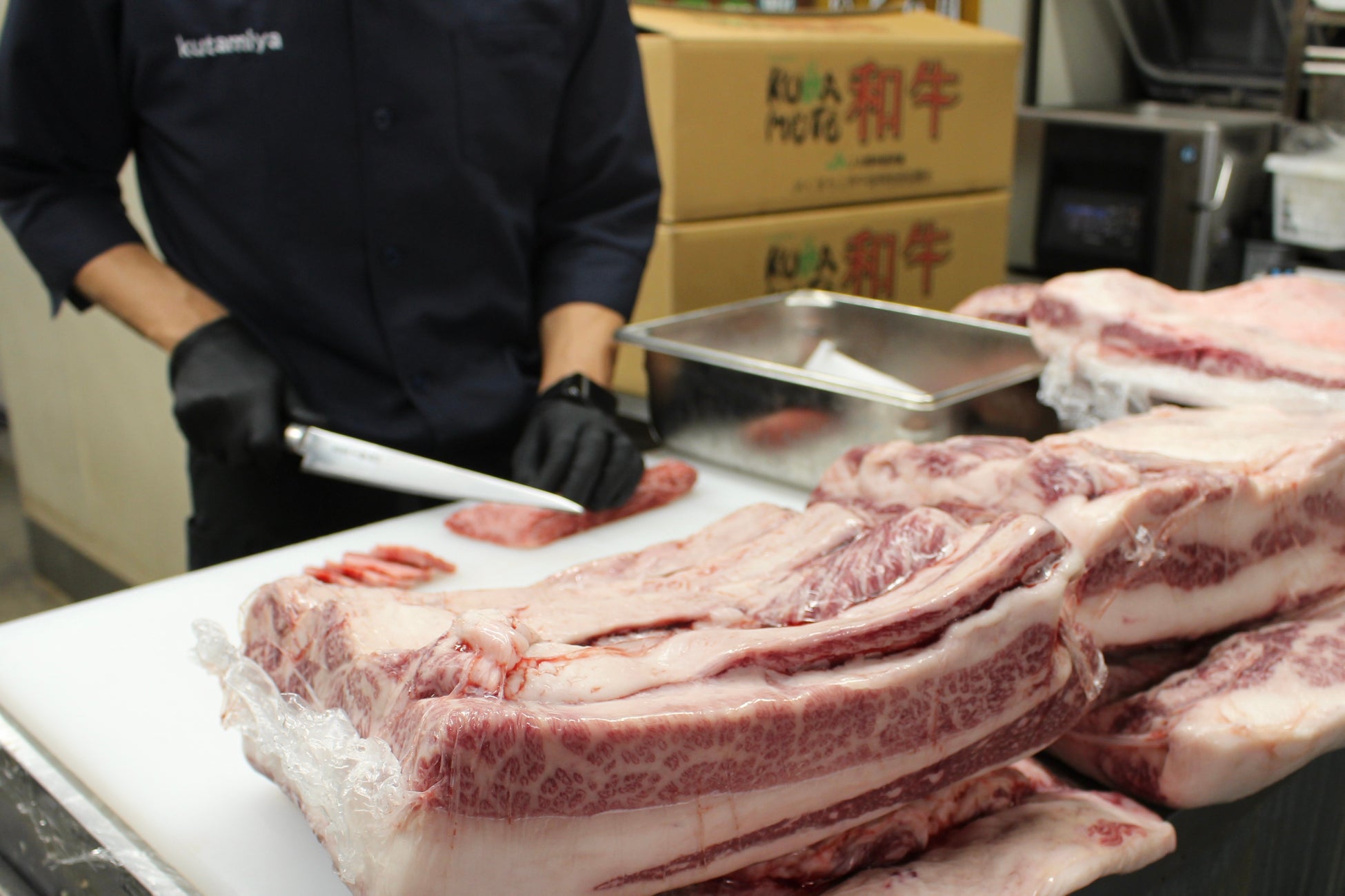 「炭火焼肉くたみや」は、「オール九州」を掲げ、「九州のあらゆるおいしいもの」が体験できる焼肉店を目指します。その一環として、和牛は全国の畜産どころである熊本、宮崎、鹿児島を中心に「九州和牛」にこだわって仕入れております。黒毛和牛は、特徴として肉質がキメ細かく、ほどよく締まった赤身が柔らかいのが特徴で、口の中でとろけるような食感がお楽しみいただけます。 また、きめの細かいサシが入っていて、味も他の牛とは味わえないような抜群の美味しさが体験できます!