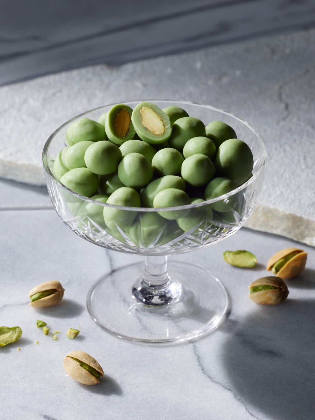 カリッと香ばしくローストしたピスタチオをピスタチオチョコレートで包み込んだ、美しい宝石のようなピスタチオショコラです。