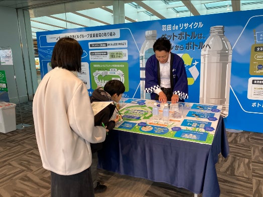 羽田空港ターミナル内にイベントブースを設置し、楽しみながら羽田空港のペットボトルリサイクルの取組みを知っていただくイベント「羽田deリサイクル~ペットボトルは、ボトルからボトルへ~(Close the loop!(循環させよう!)」として啓発活動を実施します。