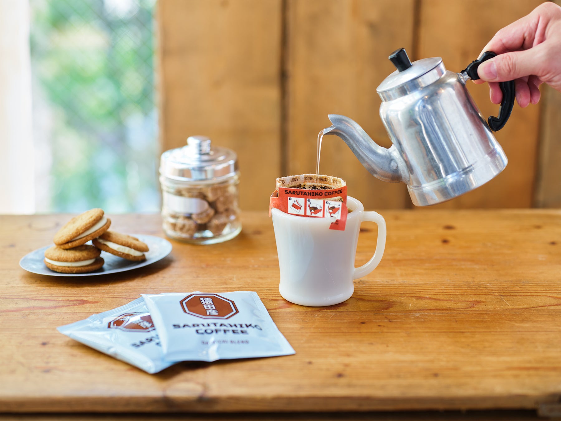 ブレンドのフレーバーをダイレクトに楽しめる「本日のコーヒー」と、牛乳ときび砂糖を合わせたオリジナルシロップを使用した「猿田彦珈琲のカフェオレ」をご用意。スペシャルティコーヒーならではの風味豊かなコーヒーをテイクアウトでお楽しみいただけます。