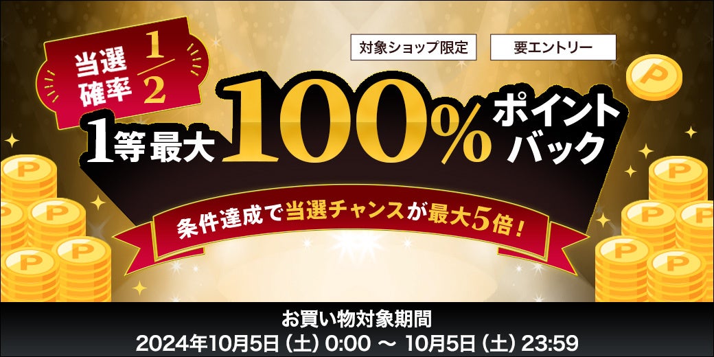 また10月5日(土)の5のつく日に、1等は最大100%ポイントバックキャンペーンに参加しております。ぜひお得に購入できる可能性のあるイベントにエントリーして芋國屋の商品をご購入ください!