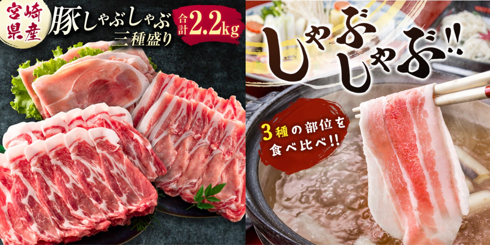 ◾︎宮崎県産 豚しゃぶしゃぶ三種盛り食べ比べセット 合計2.2kg