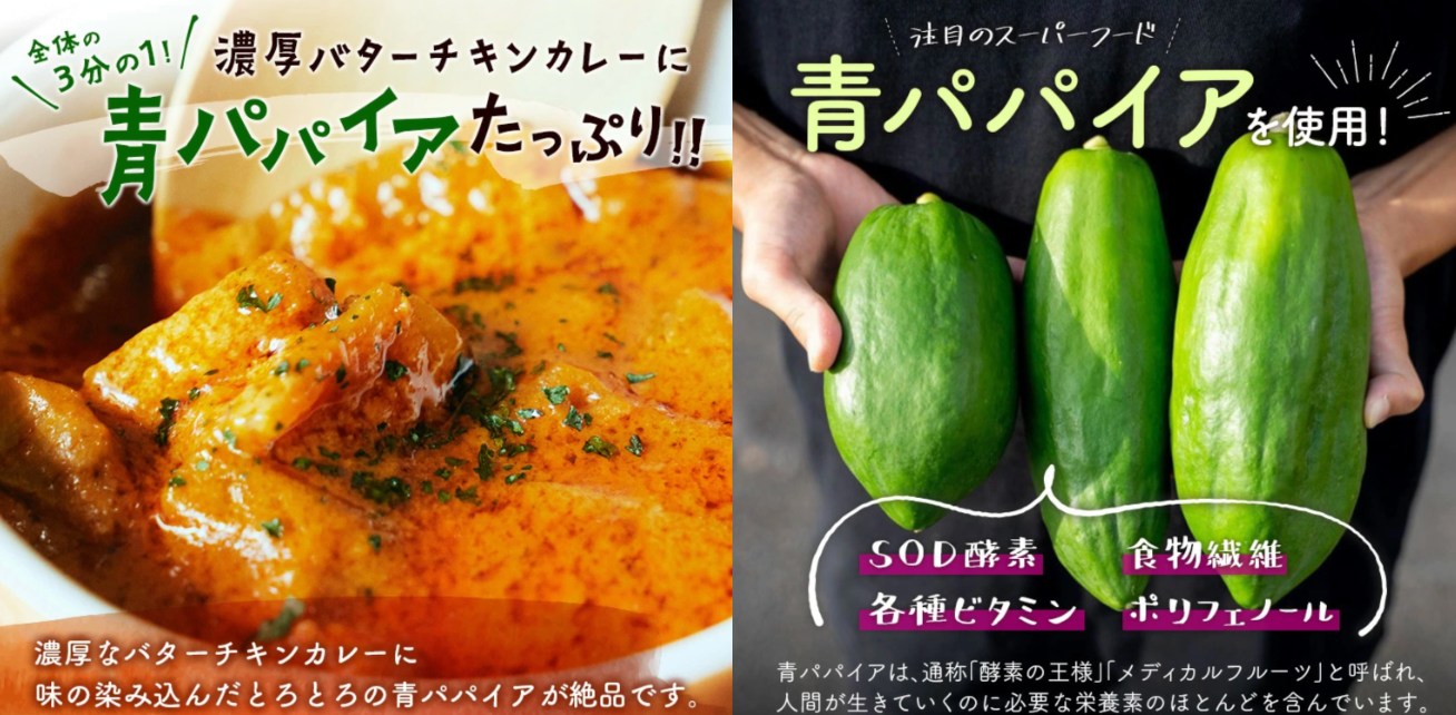 宮崎県新富町産の青パパイアをふんだんに使った『青パパイアバターチキンカレー』