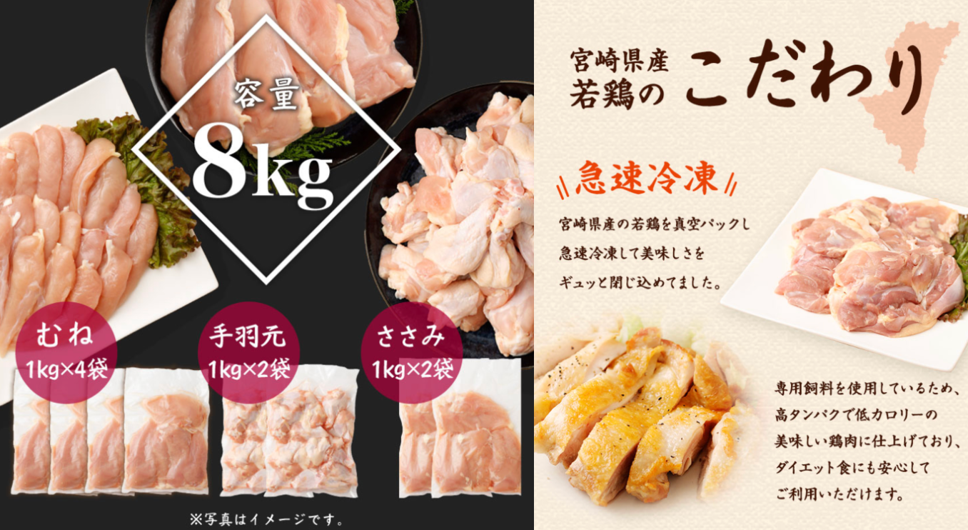 ◾︎宮崎県産 若鶏8kgセット ムネ肉4kg/手羽元2kg/ササミ2kg