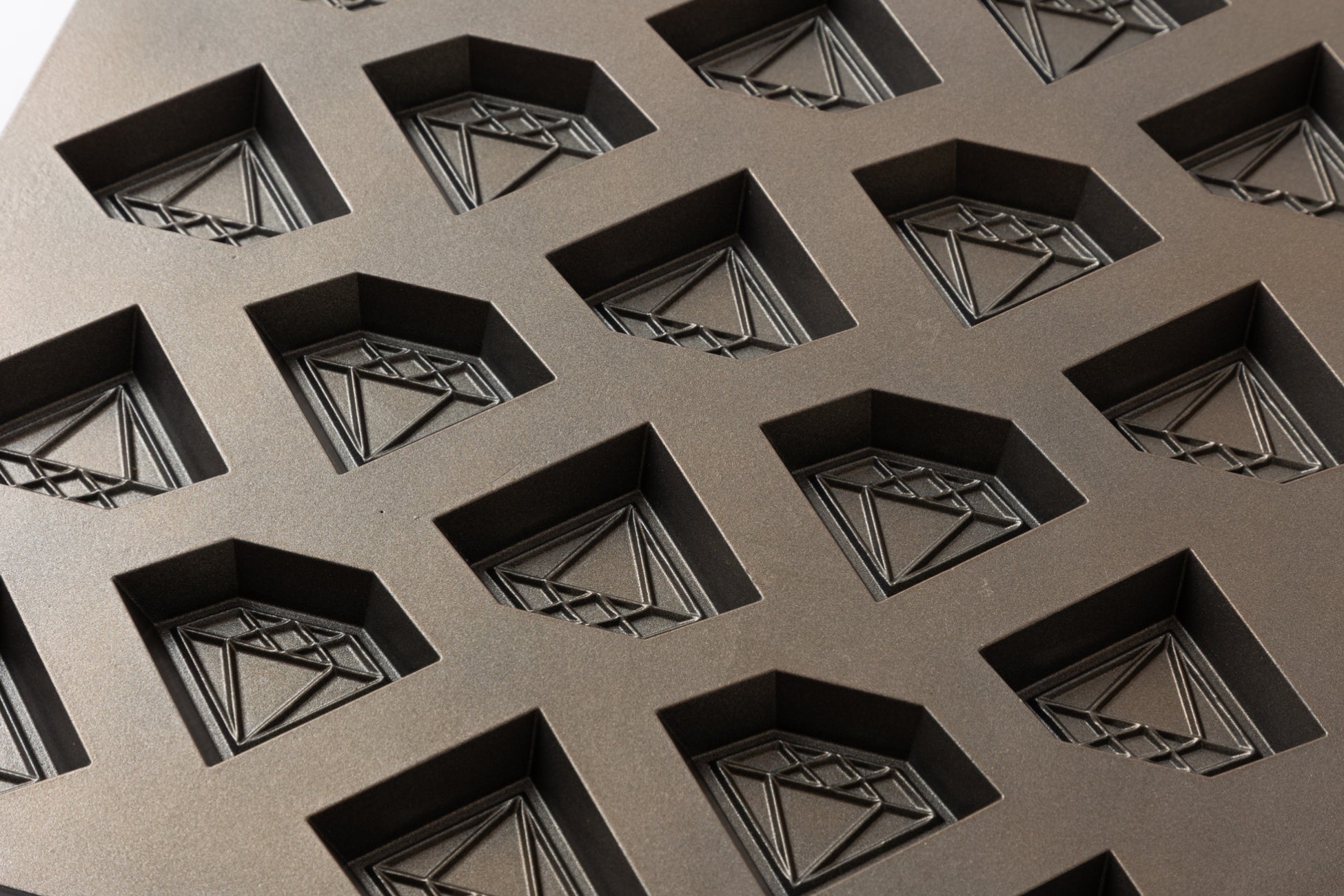 一方で、Bijewell Parfaitのフィナンシェは、宝石店ならではの「オリジナルのダイヤモンド型」を採用しています。これは、宝石の美しさや輝きをイメージし、その価値をスイーツに込めることで、贈り物としての特別感をさらに高めたいという思いからです。インゴットが象徴する「富」から、さらに一歩進めて「美しさ」と「特別な価値」を象徴する形に変え、まさに宝石のように輝くスイーツとして仕上げました。このダイヤモンド型フィナンシェは、宝石店ならではのこだわりを込めて、受け取る方に特別な喜びと体験を提供します。
