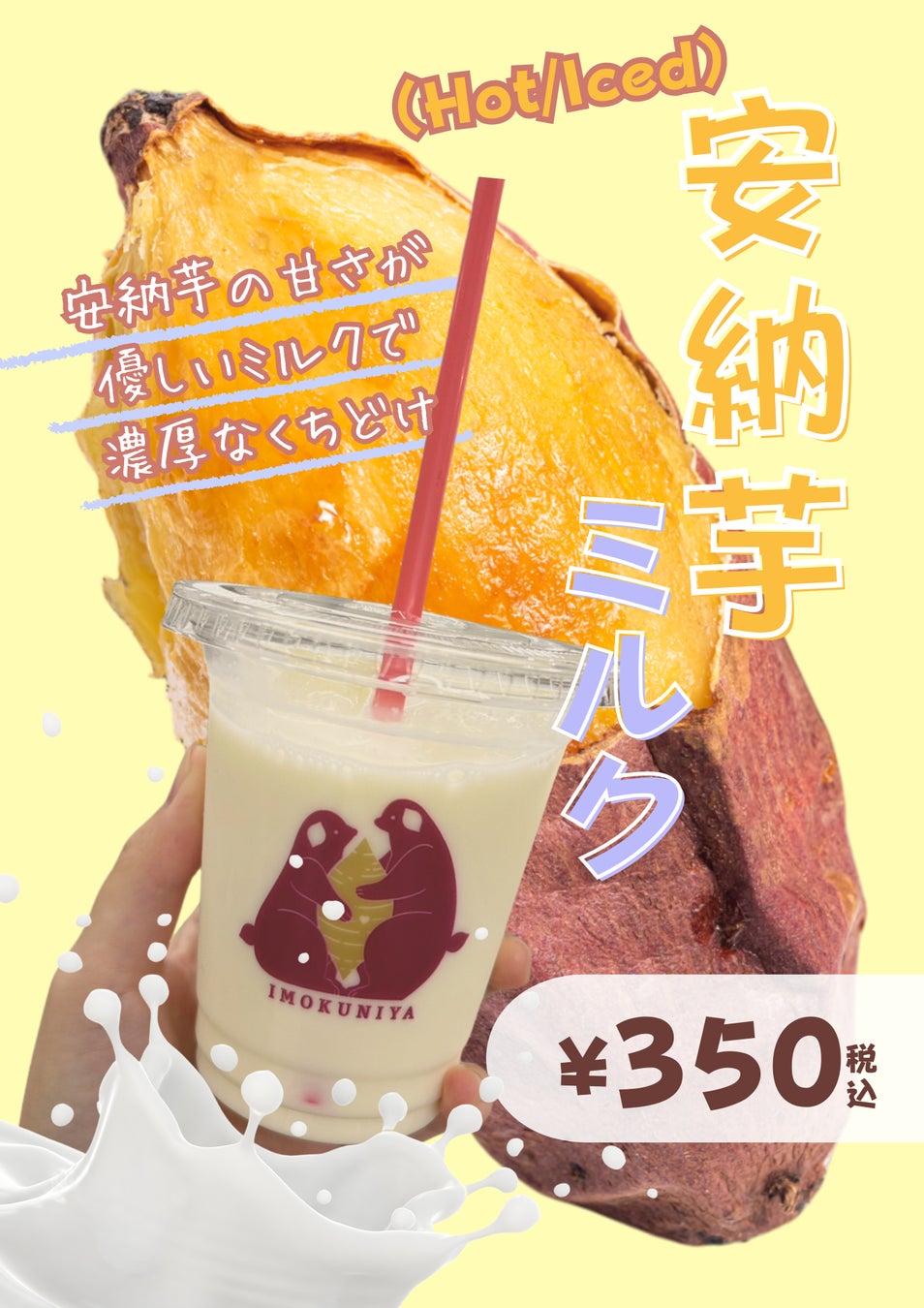 安納芋のキャラメルのような風味の優しい甘さとミルクで、濃厚な味わいが、これからの季節にピッタリの商品となっております。