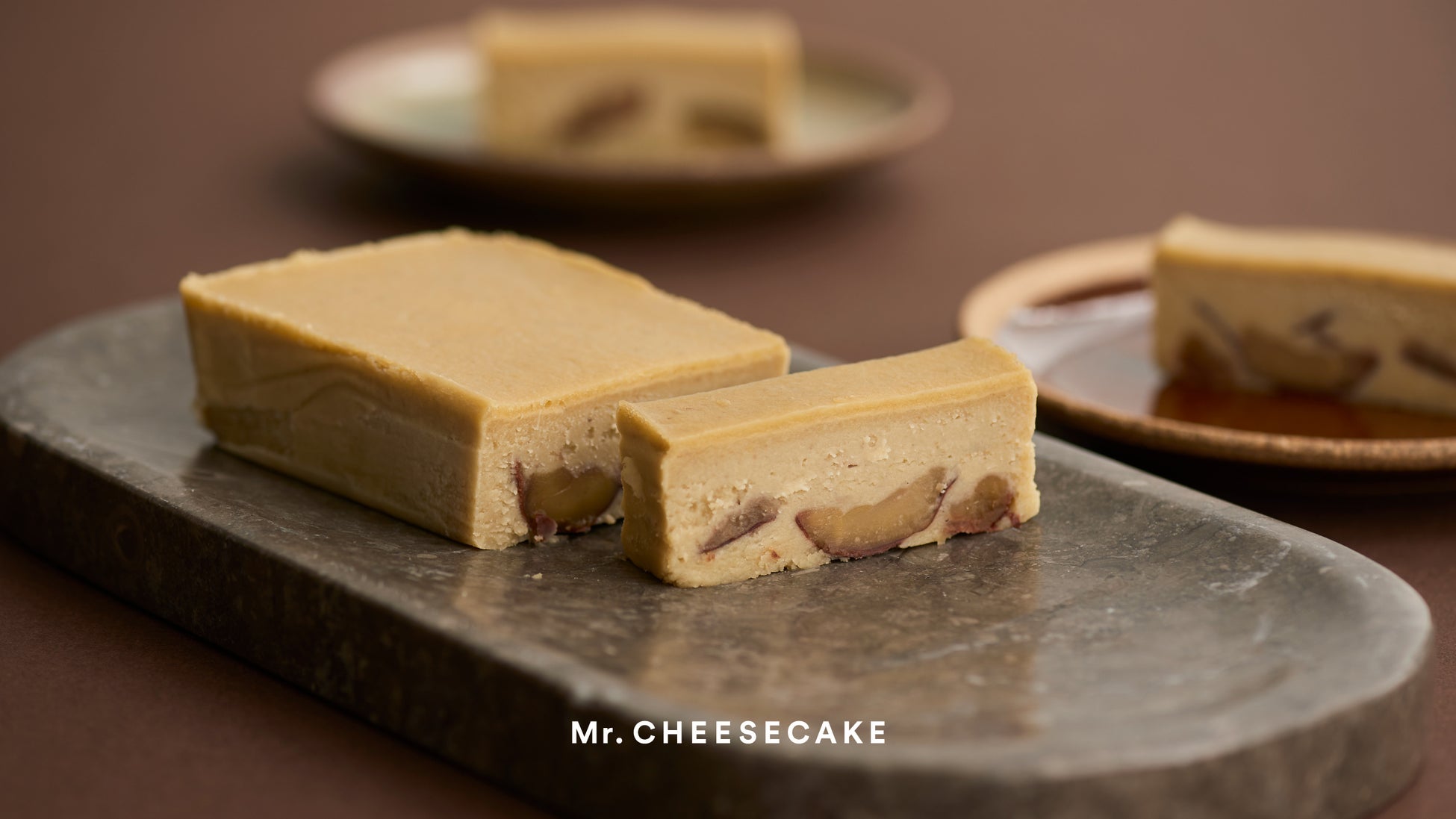 旬の味覚「栗」を使用した全3種のスイーツをお届けする特別なコレクション「Mr. CHEESECAKE MARRON COLLECTION」の最後を締めくくるのは、昨年期間限定で販売し、好評いただいたマロンテリーヌです。和栗本来の香りや味わいを最大限感じられるように、きび砂糖、卵黄、生クリーム、バターを組み合わせ、シンプルに仕上げました。