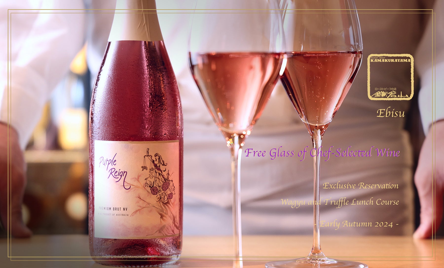 ご予約のお客様にはシェフセレクトのワイン ‘ Purple Reign ‘ 1杯 無料でご提供いたします。