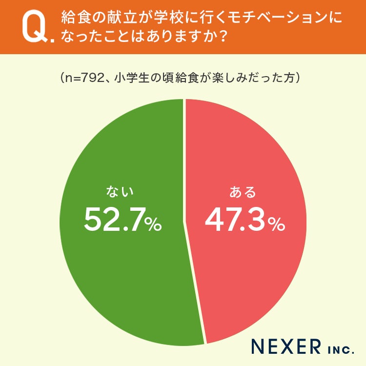 ■47.3%が給食の献立が学校に行くモチベーションになったことが「ある」